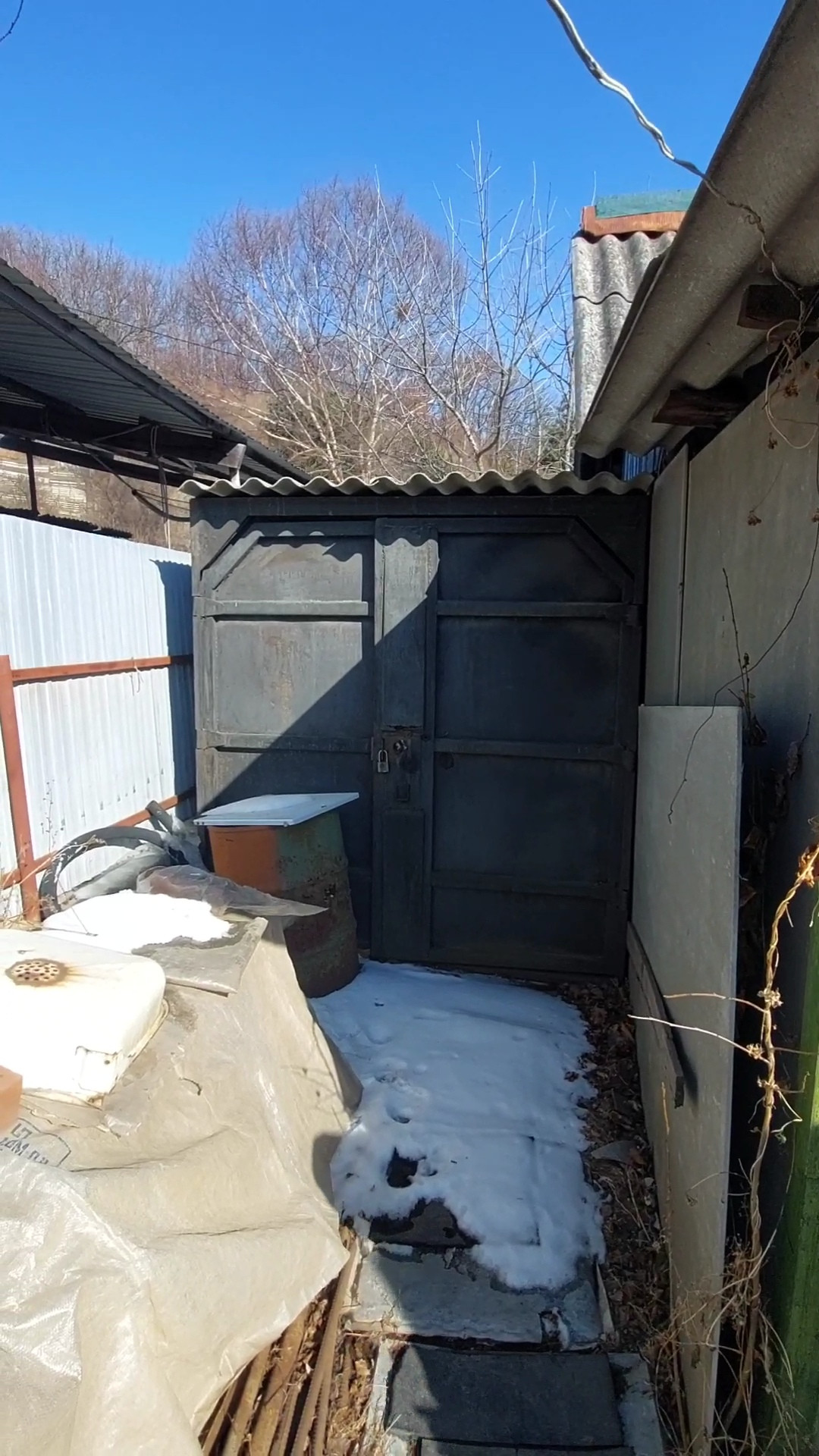 Контейнер 5т, хозяева закрывают там инструмент, так же убирают на зиму всю утварь по хозяйству.