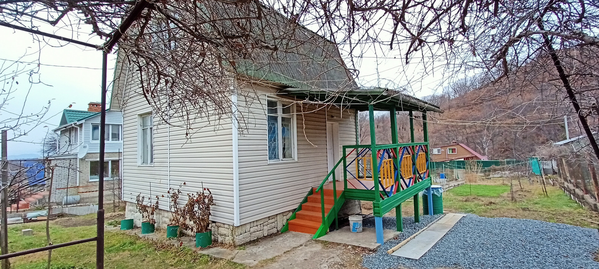 На территории - колодец. Парковочное место на 2 авто. Навес а/парковки увит лианами кишмиша, в теплое время - тенёк, ещё - красиво и вкусно )) Хорошие, тихие соседи, проживающие круглогодично - гарантия, что "добрые" люди не "помогут" собрать ваш урожай! К участку - 4 дороги (Ключевая, Центральная, Озёрная, Приисковая). Шаговая доступность до моря, около 10 минут, если пешком. Есть возможность подключения ТV и интернета.