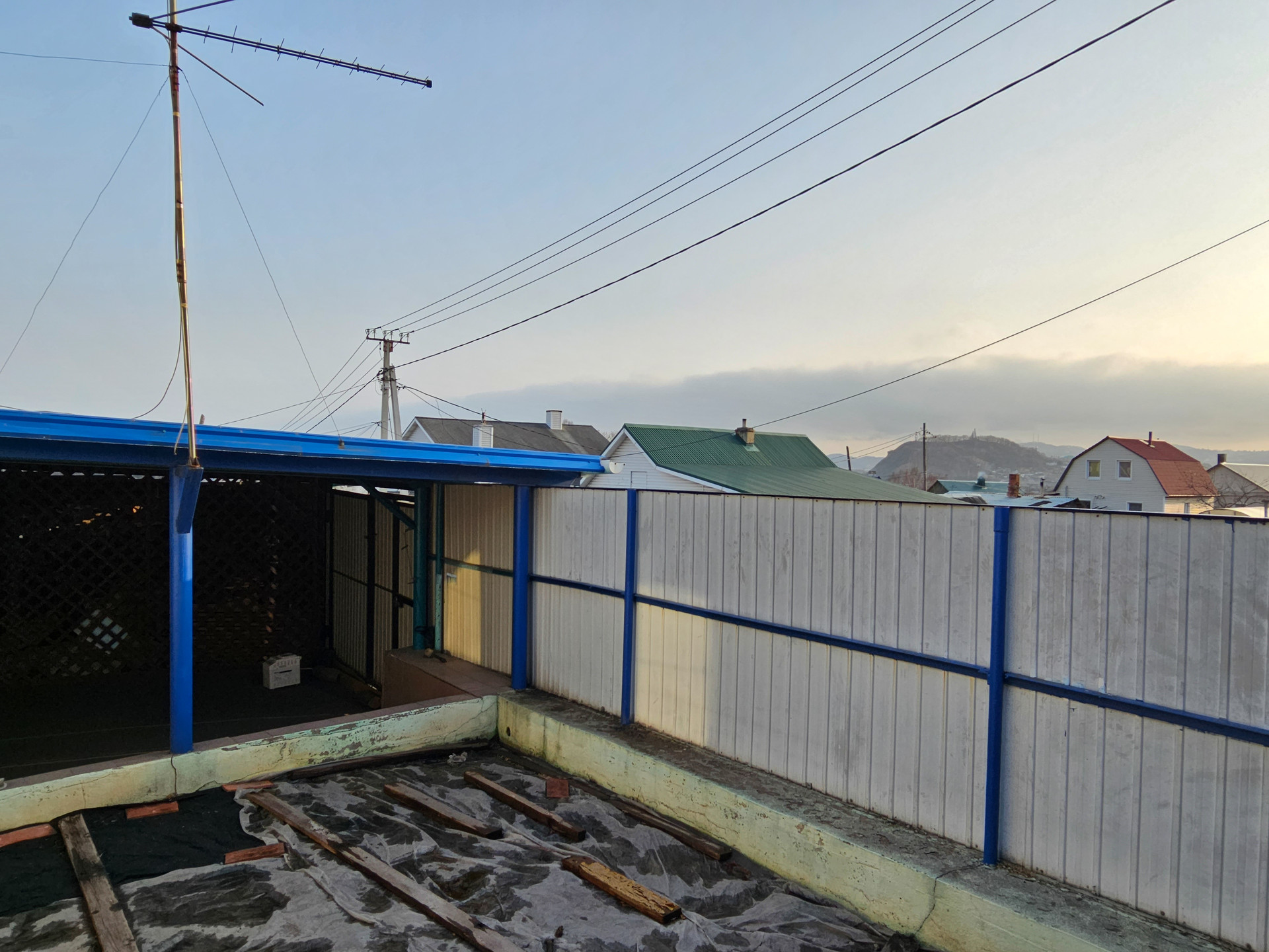 - Забор (металлопрофиль на бетонной основе);