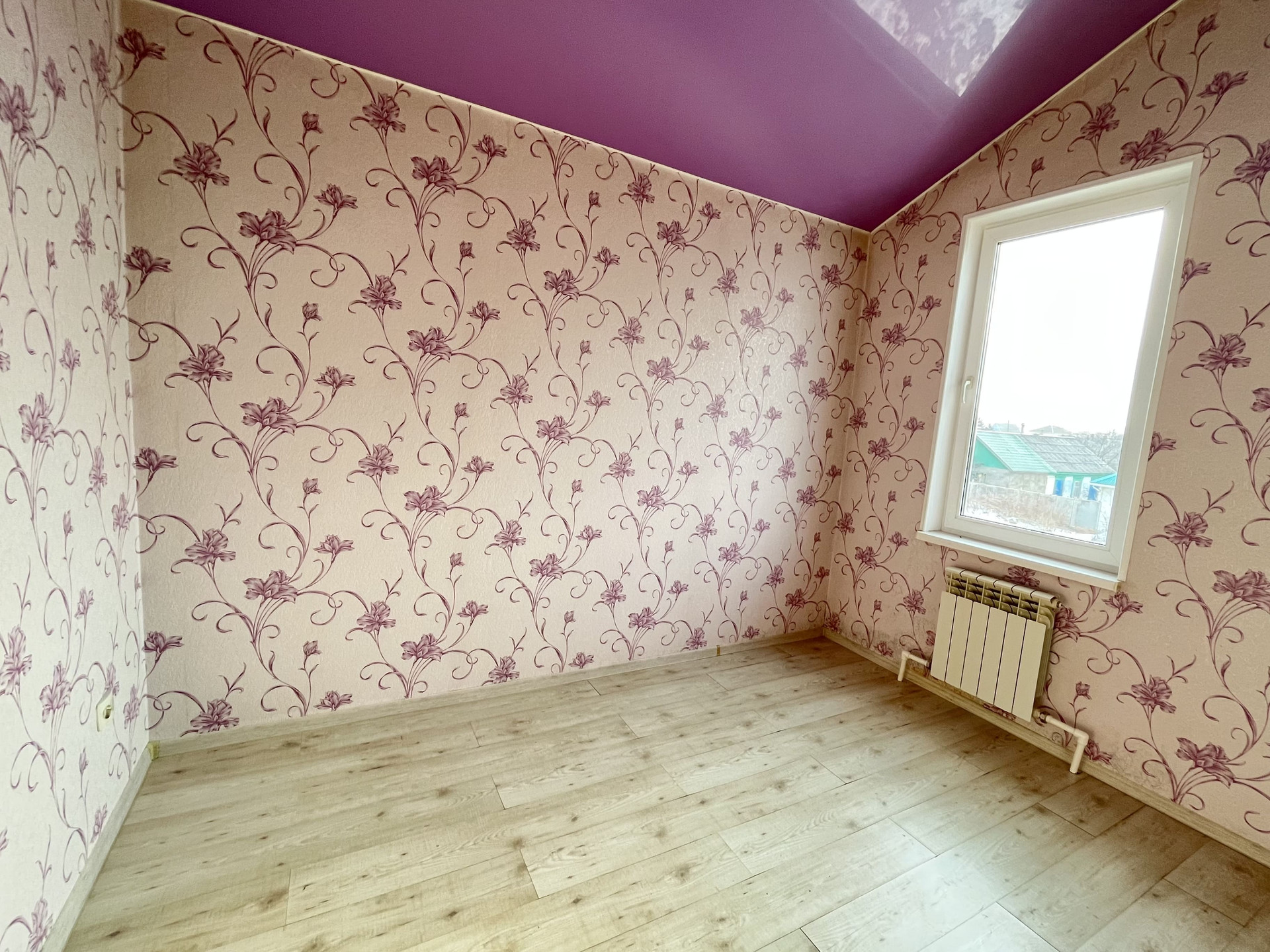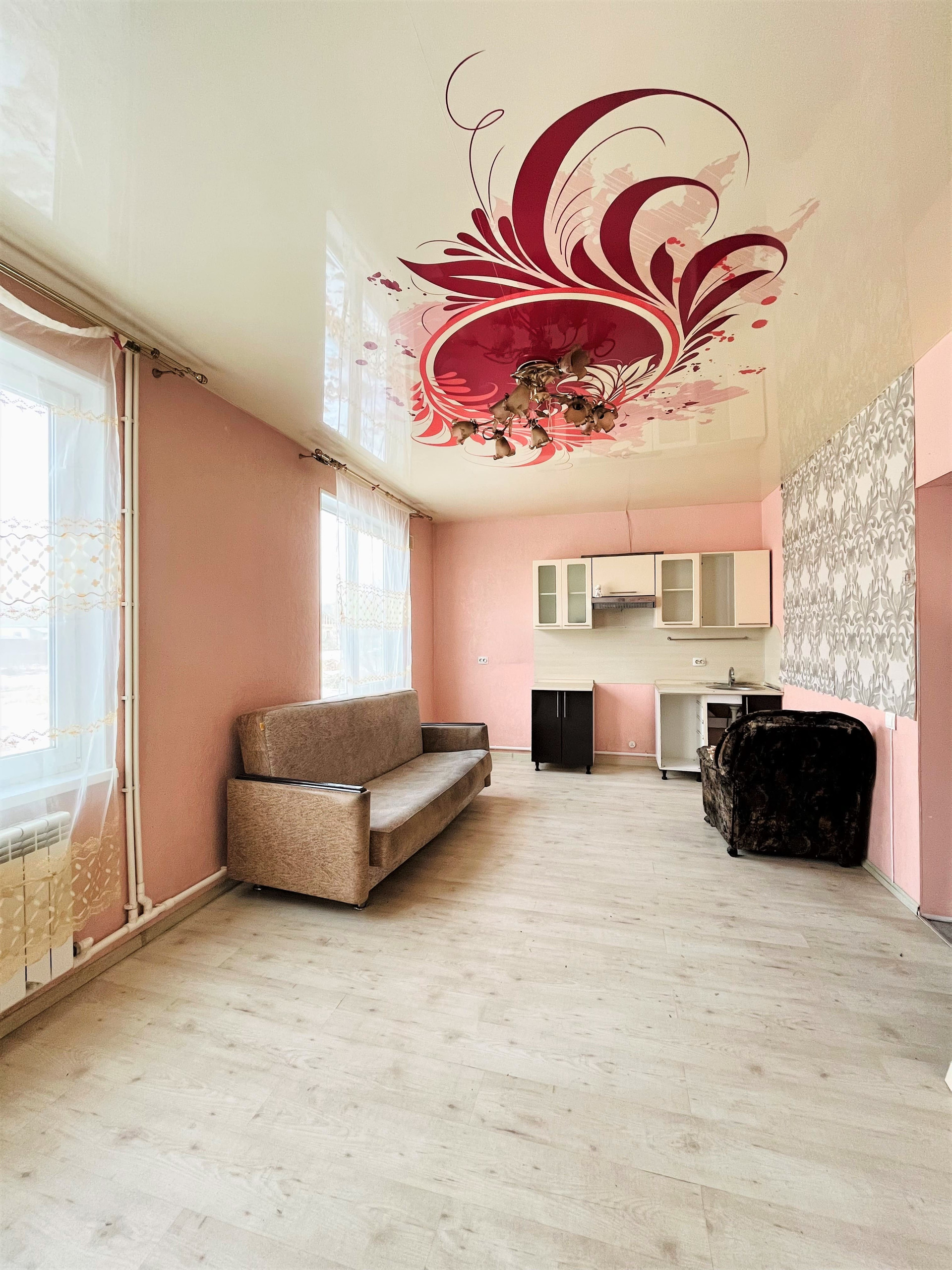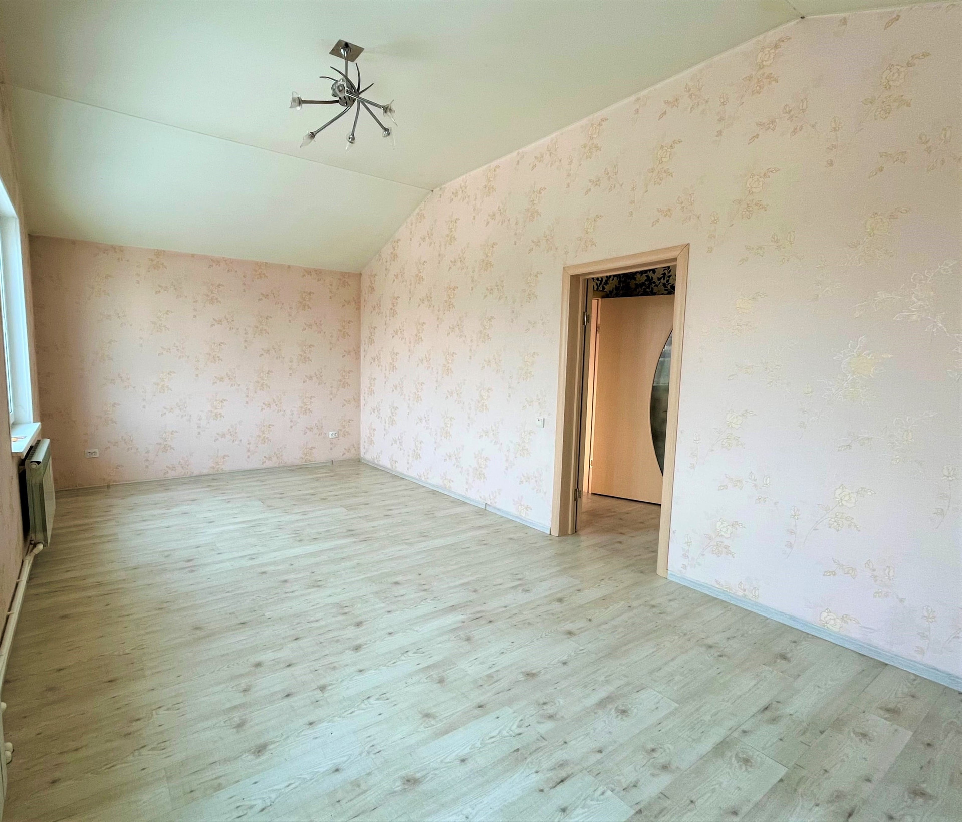 На первом этаже расположена большая гостиная с кухонной зоной, совмещенный санузел, котельная, место для хранения под лестницей. На втором этаже дома находятся 2 отдельные спальни. Натяжной потолок, ламинат, обои, кафель в ванной. Водоснабжение централизованное.