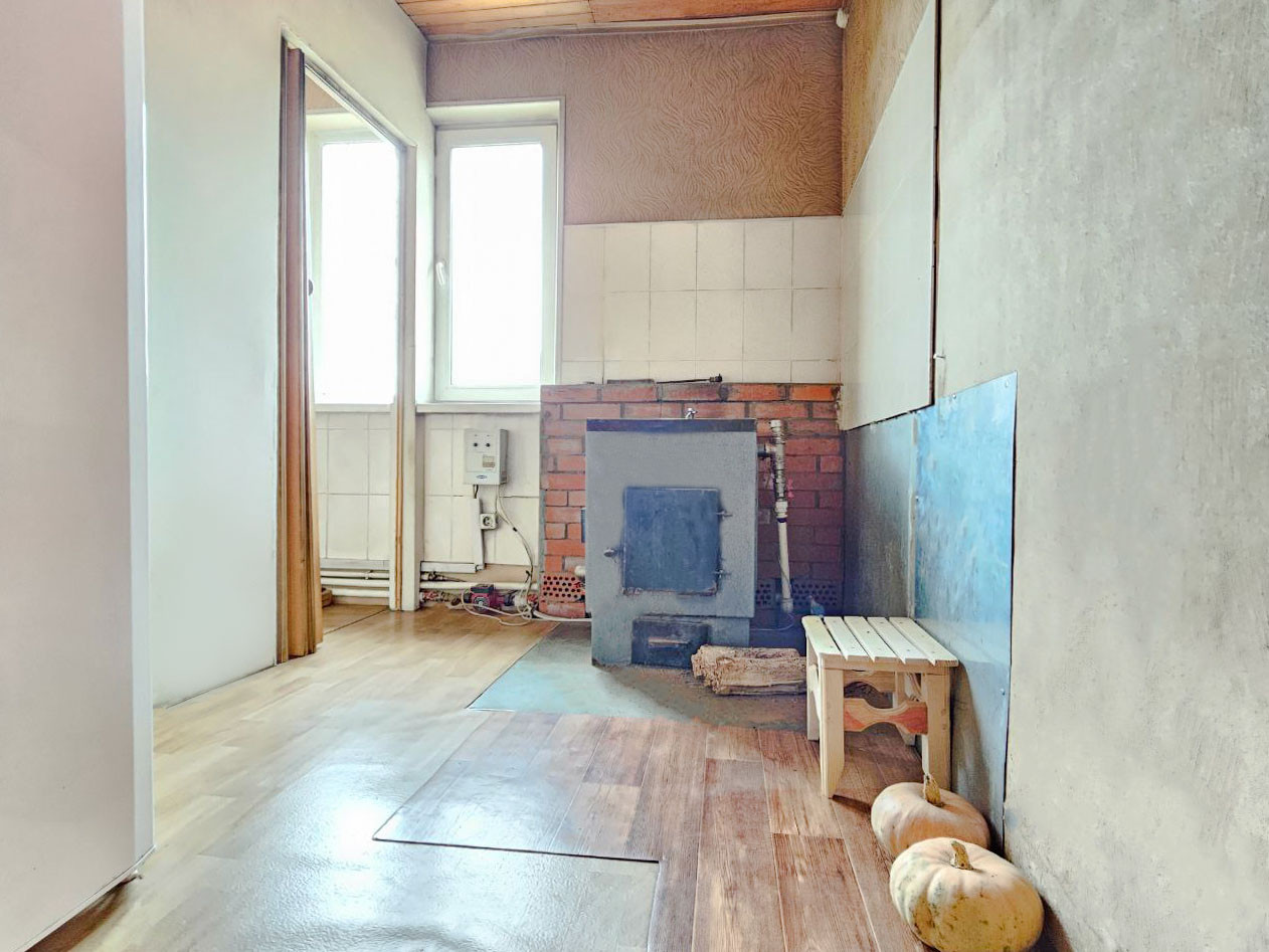 Отопление - жидкостное от твердотопливного котла + электро тэн 6 кВт, два кондиционера с режимами охлаждения и обогрева