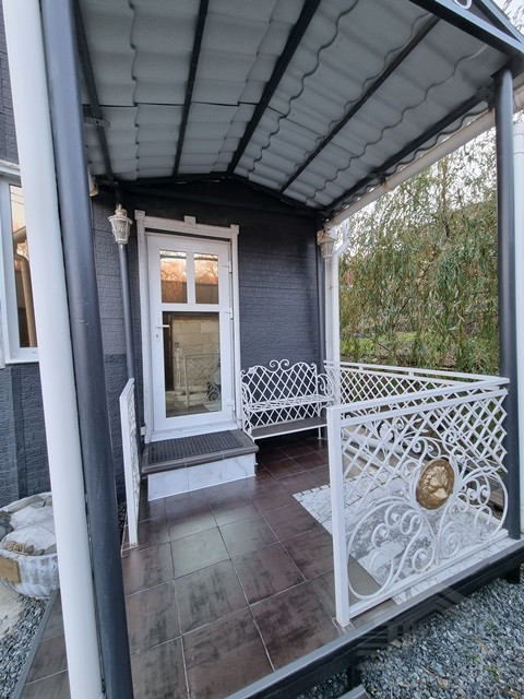 Крыльцо с крышей, напольное покрытие - кафель, декорировано металлическими поручнями