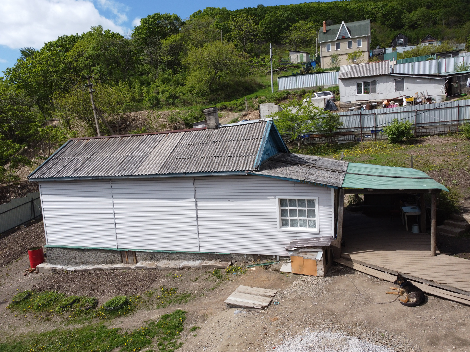 Дом в Южном, второй ряд от дороги.