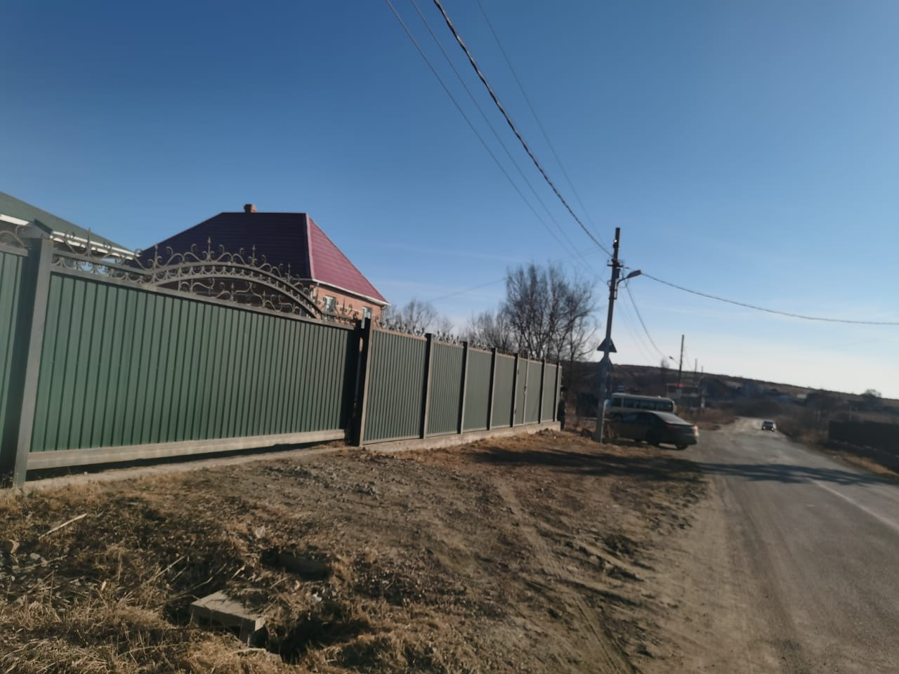 Участок ровный, сделан дренаж и отсыпка выше уровня дороги.