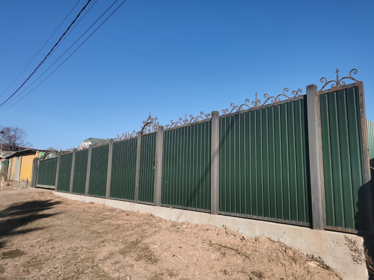 По периметру всего участка установлен забор.