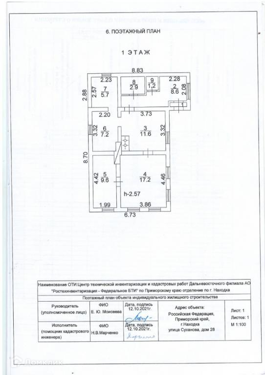 1-этажный дом, 71.3 м2, на продажу в Находке, улица Суханова, 28