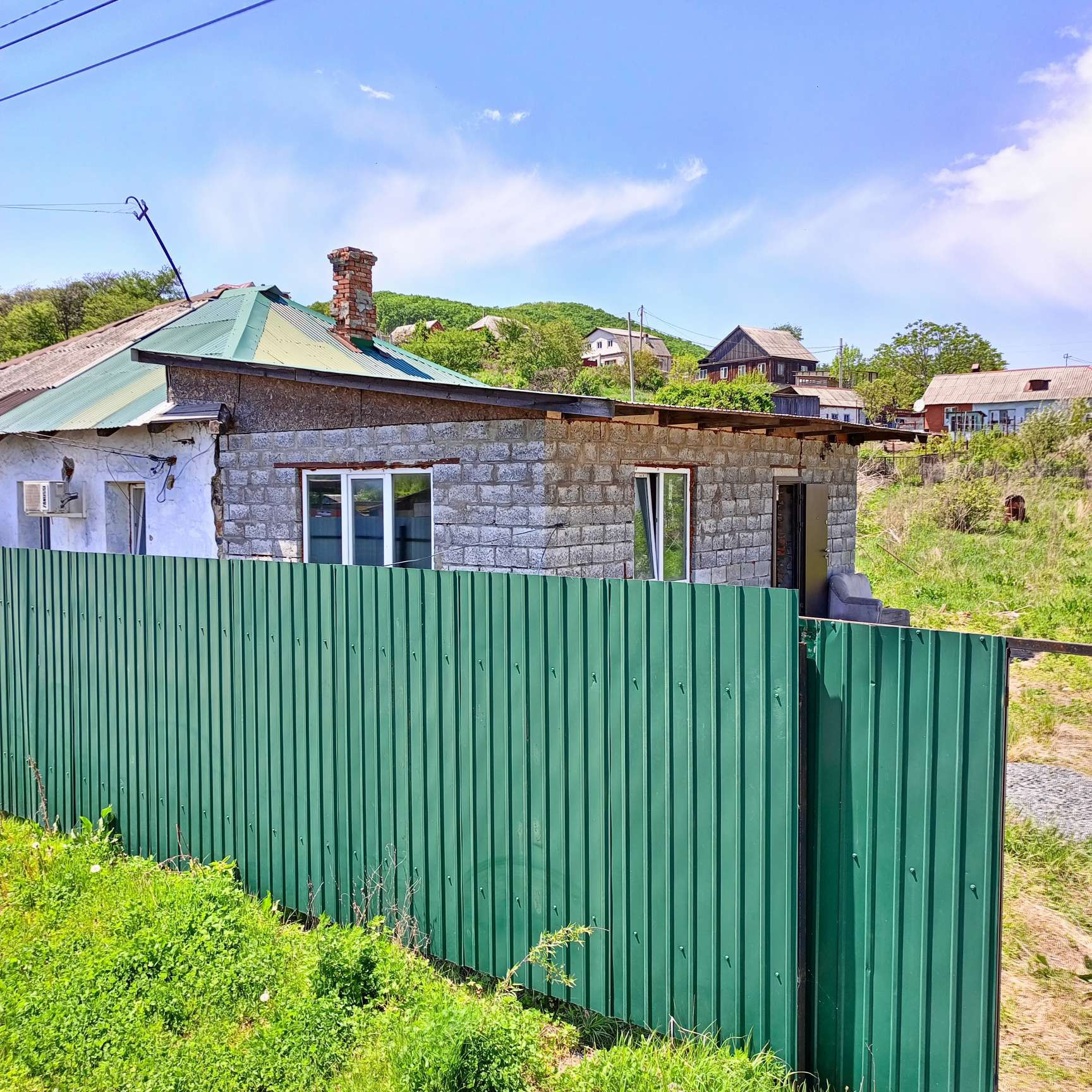 Дом каменнобутовый 30 м кв + 38 м кв пристройка из шлакоблоков. Крыша скатная- профнастил. Окна КВЕ, дверь металлическая. Пол засыпан отсевом. Вода(городская) , свет(городской), канализация(септик 2,5 кольца) -- все заведено в дом. Ровный участок-1009 м кв. Забор металлопрофиль. Дом и земля в собственности. Прекрасное расположение дома- за ТД"Купеческий", рядом школа, МЦ"Асклепий", рынок, ряд магазинов, почта, кафе, спортзалы. В пяти минутах на авто- "Сити-Центр" и городские пляжи..