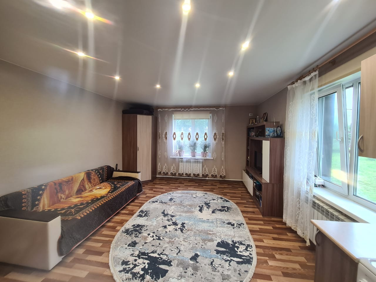 Планировка - комната, кухня + гостинная, просторный санузел, котельная, тёплая и холодная веранда, большой и сухой погреб, мансарда на всю площадь дома. Есть конструктивная возможность обустроить комнаты в мансардном этаже.