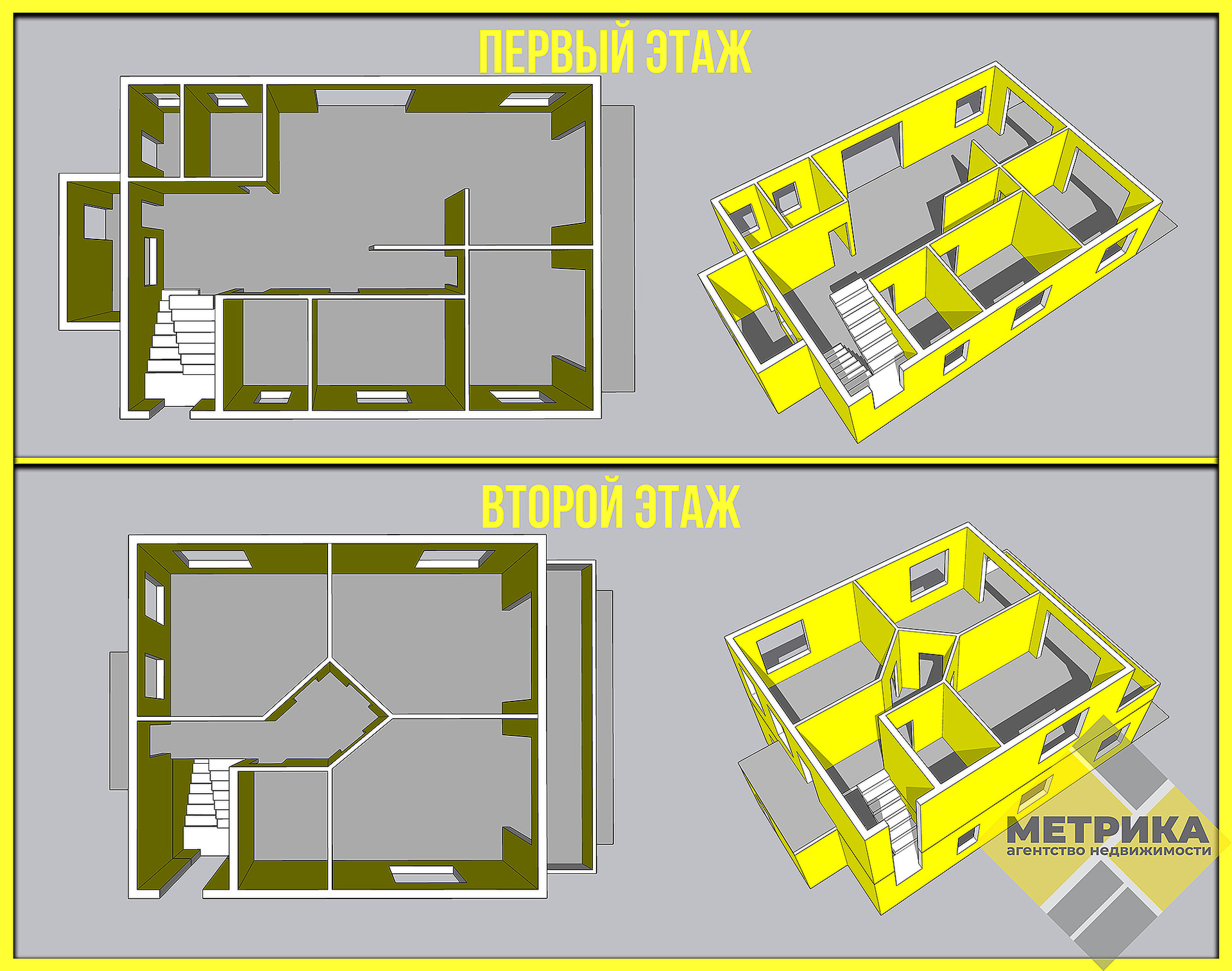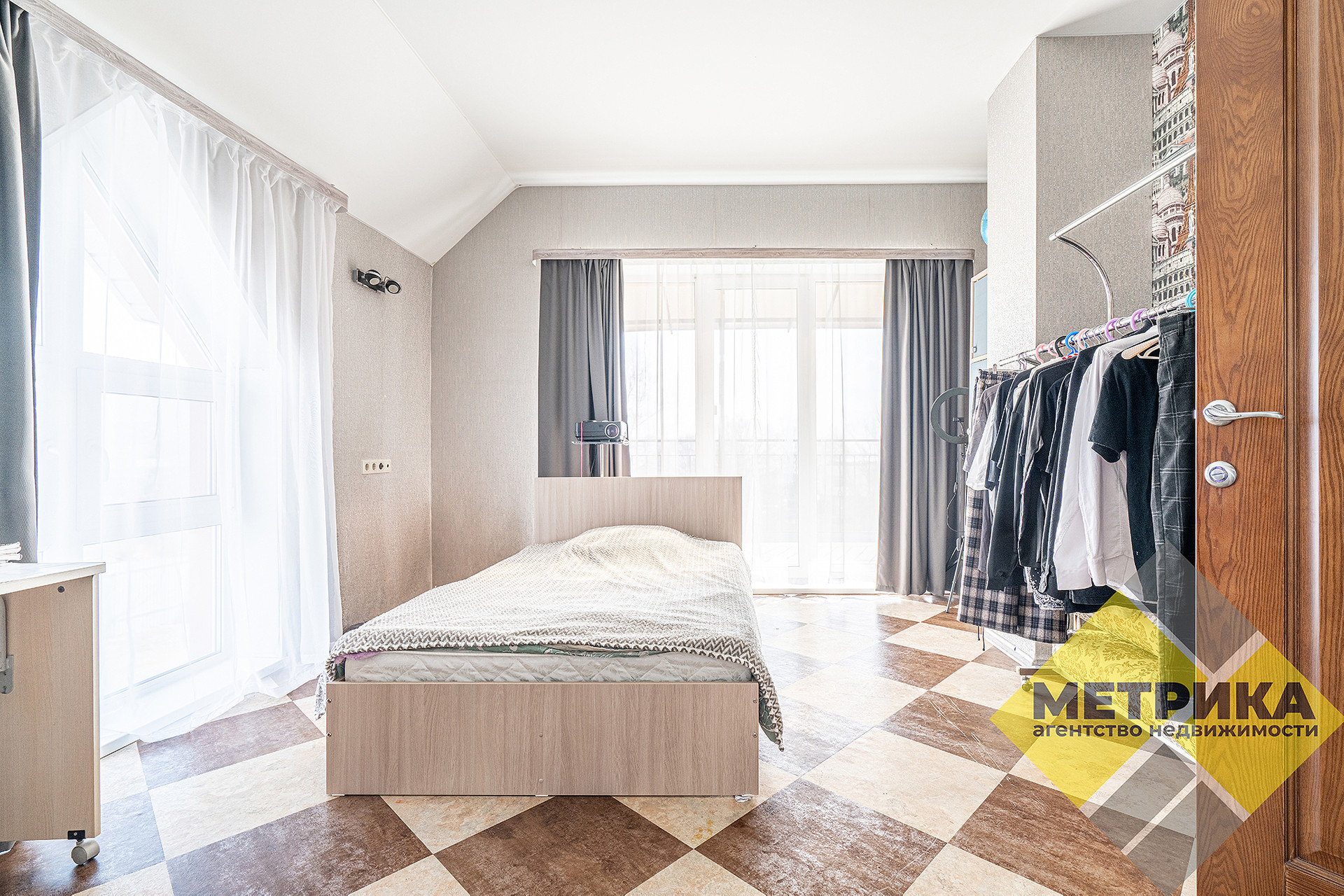 1 этаж: кухня, гостиная, гардеробная, 2 спальные комнаты, санузел.