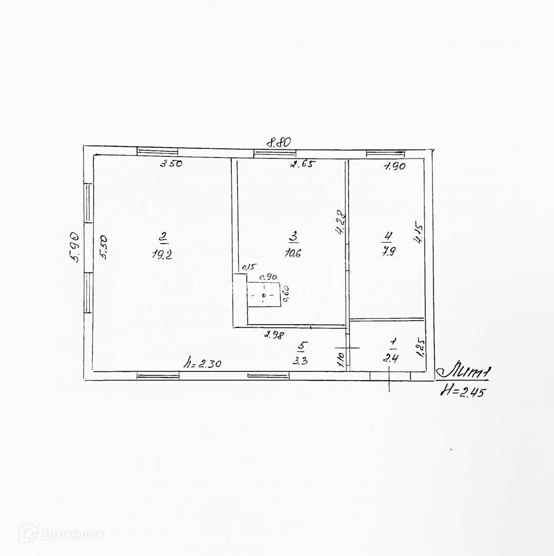 В доме прихожая, просторная кухня (10,6 кв.м.), спальня (8 кв.м.) и зал (19,2 кв.м.) Пристроена комната для отдыха (9 кв.м.)