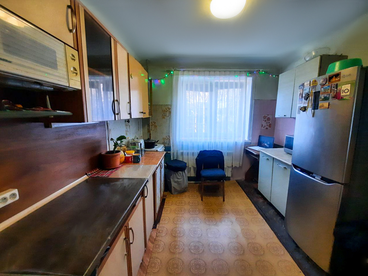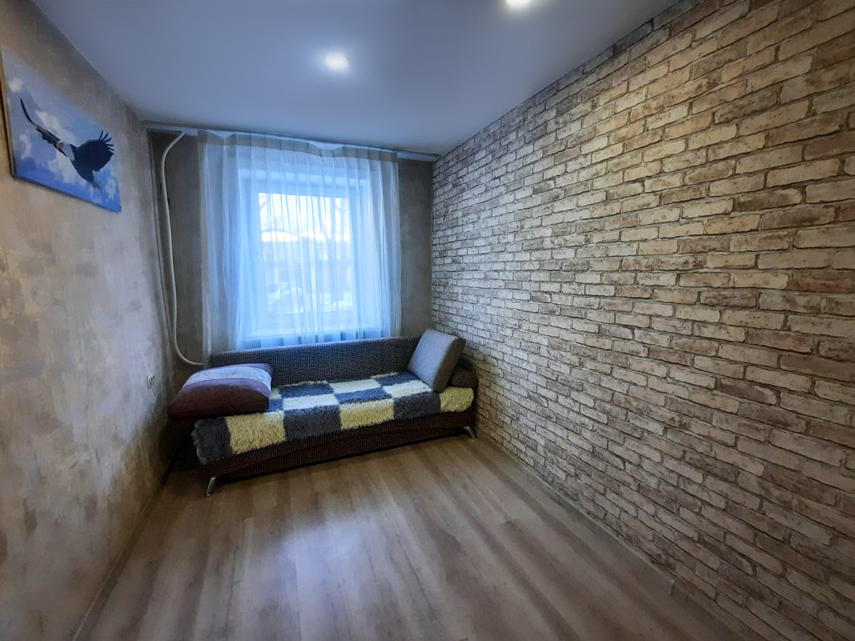 В комнате сделан свежий ремонт. Заменена проводка, стены перетерты, новый радиатор, натяжной потолок.