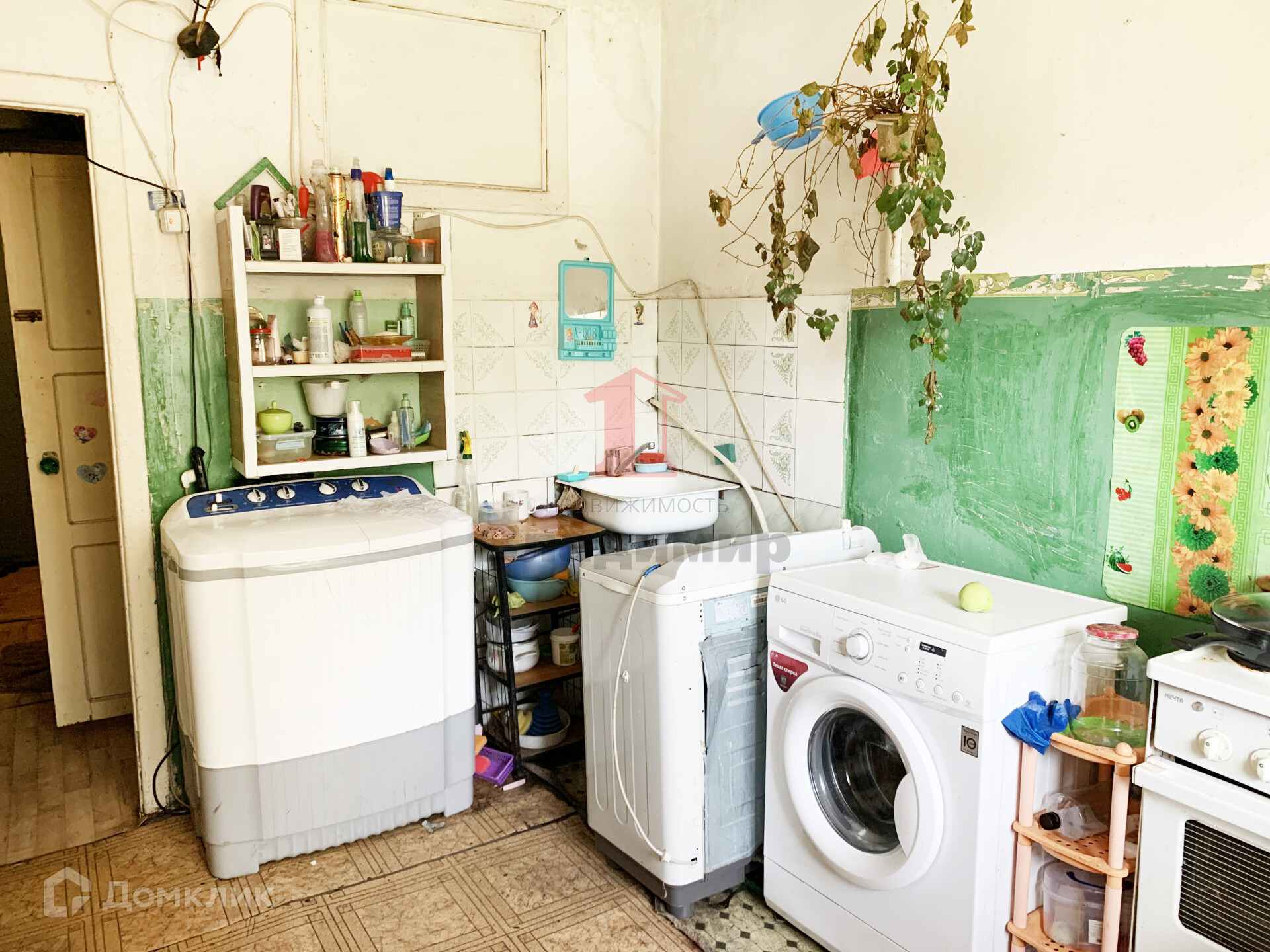 В секции пять комнат, место на кухне, есть место под стиральную машинку. Соседи спокойные.