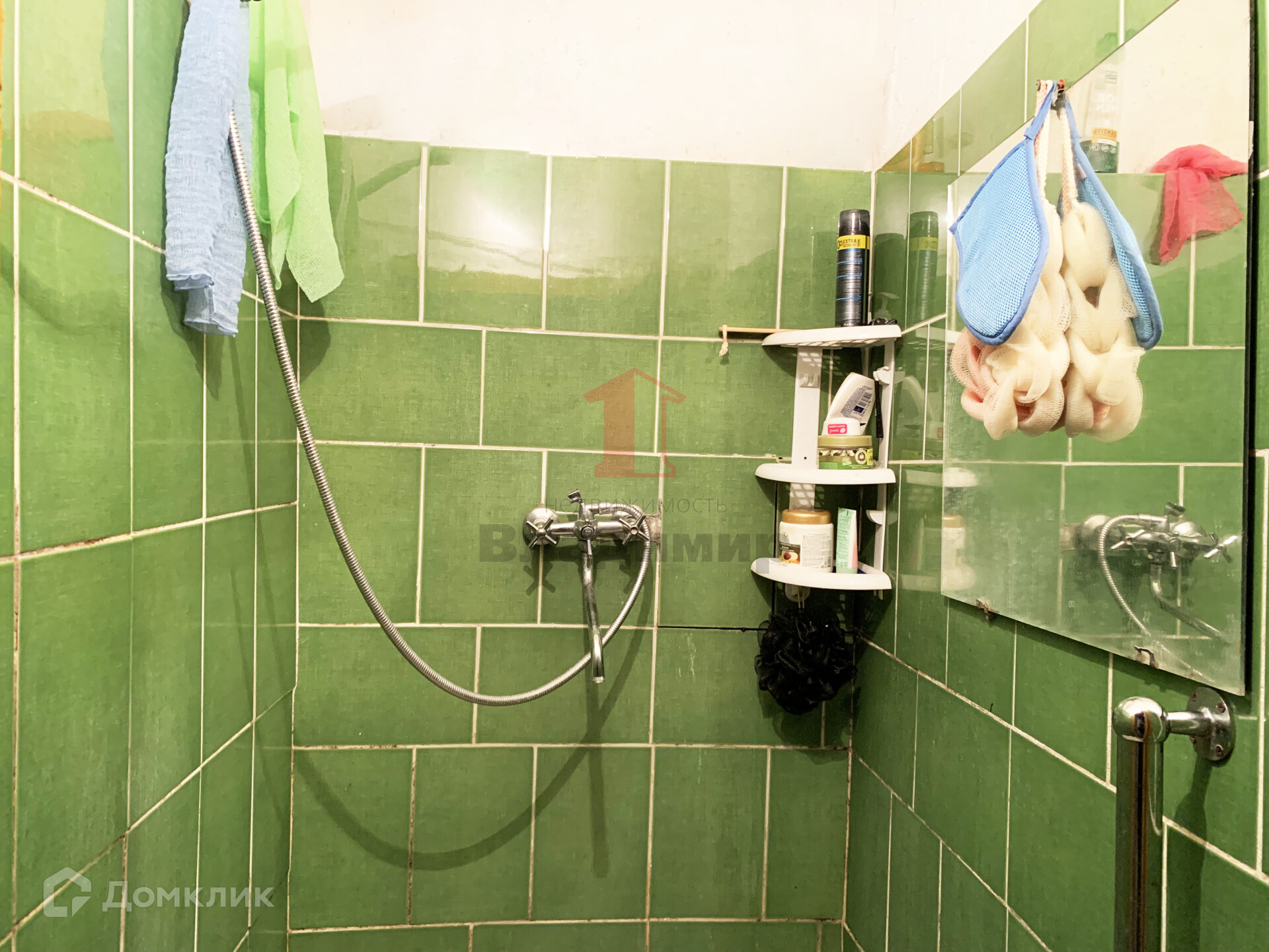 В секции душ, туалет, середина дома.