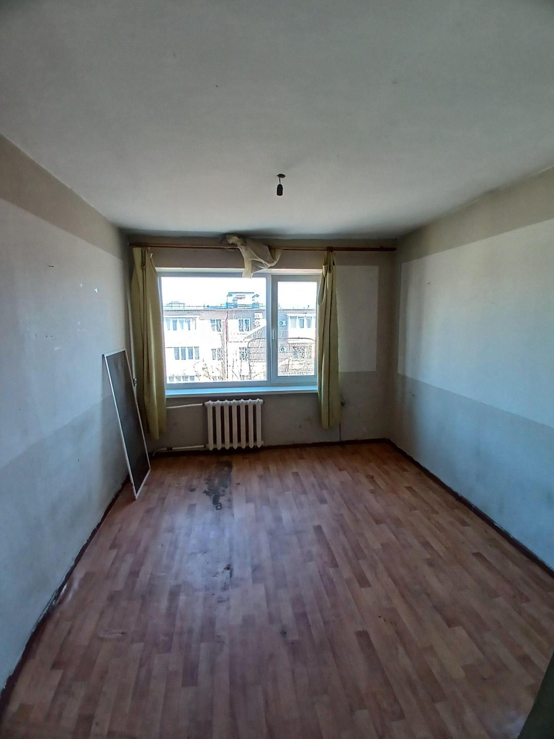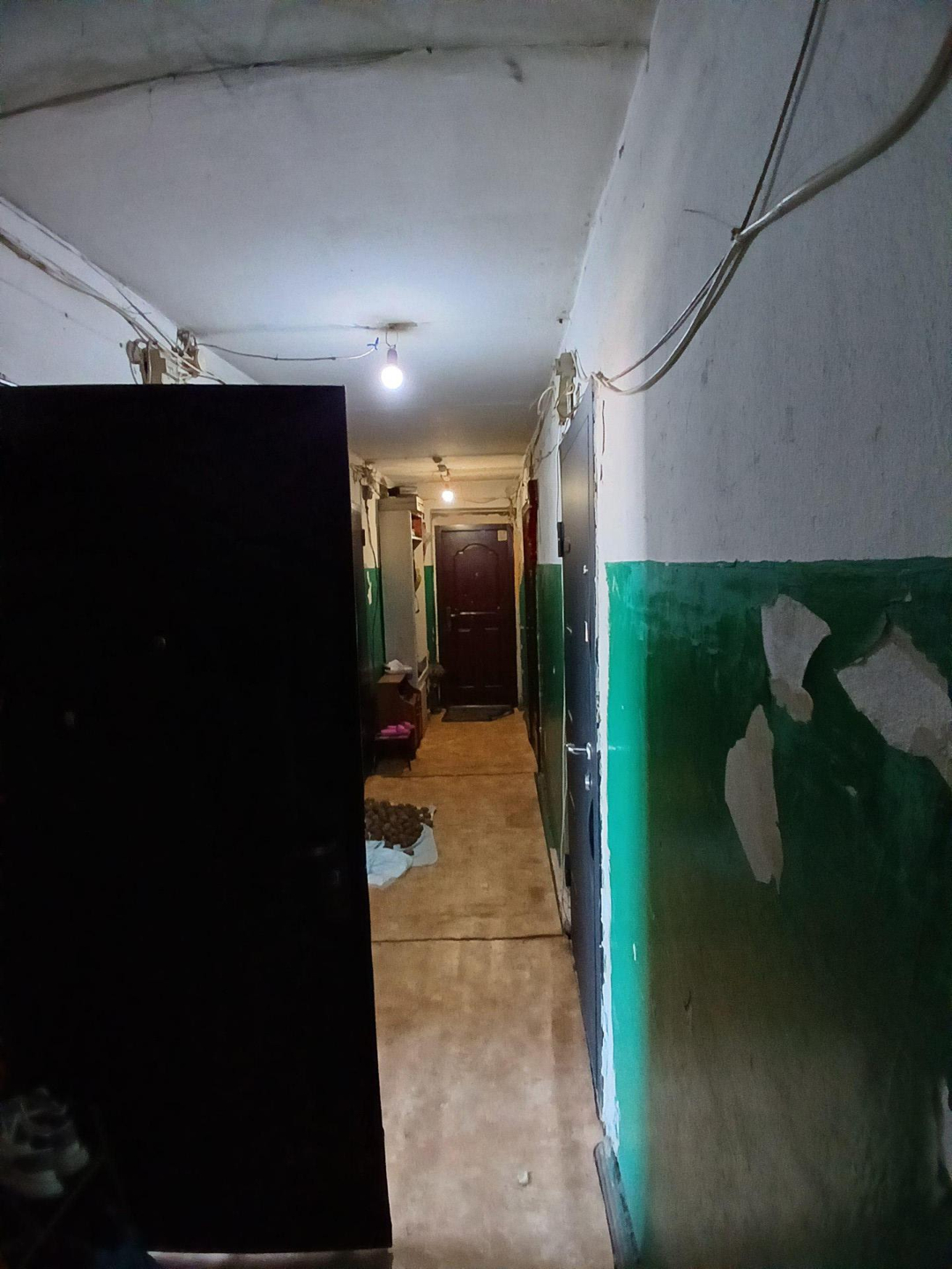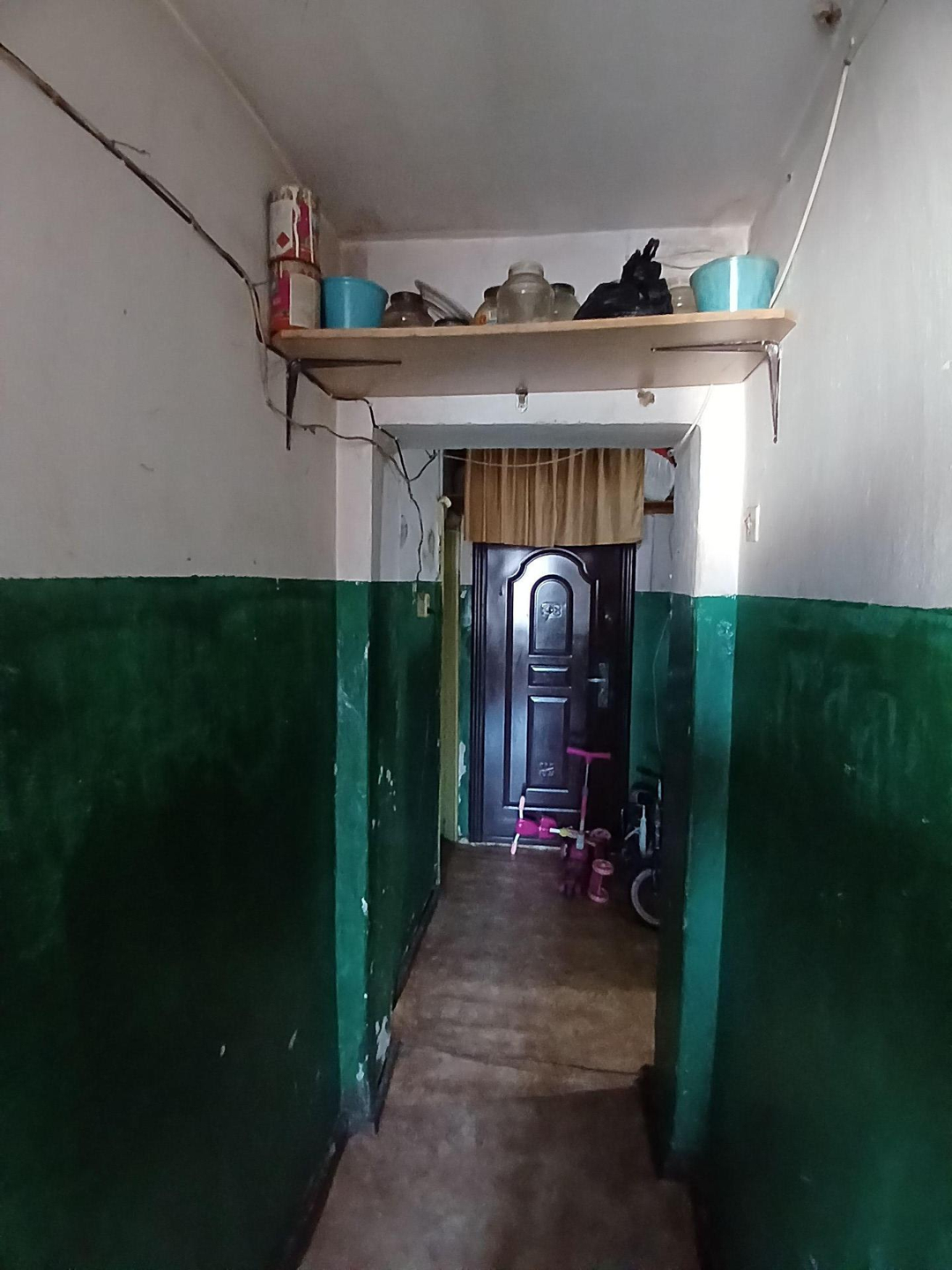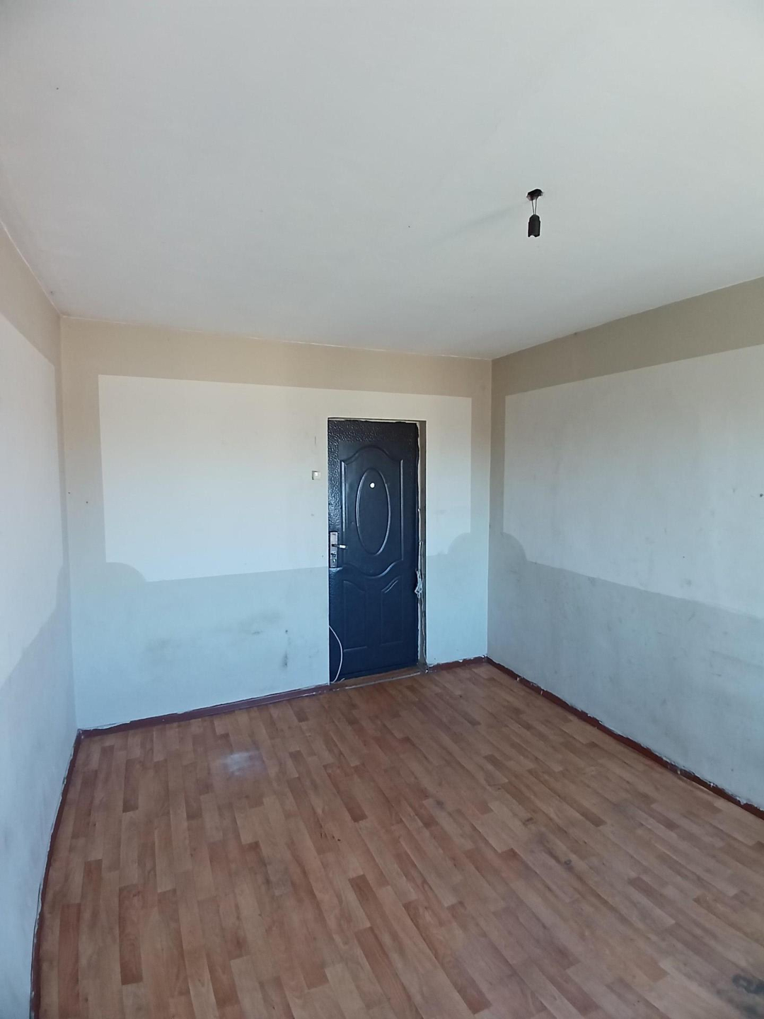 Железная дверь , линолеум , стены выровнены , новые окна . В комнате есть выброска. Хорошая комната .