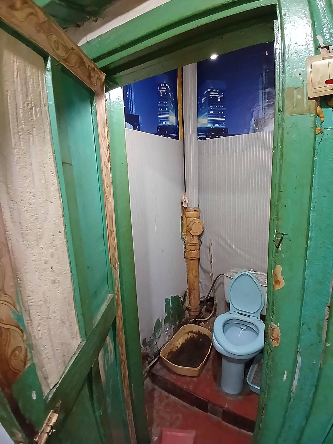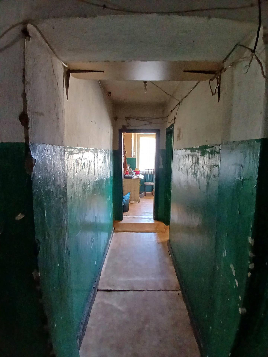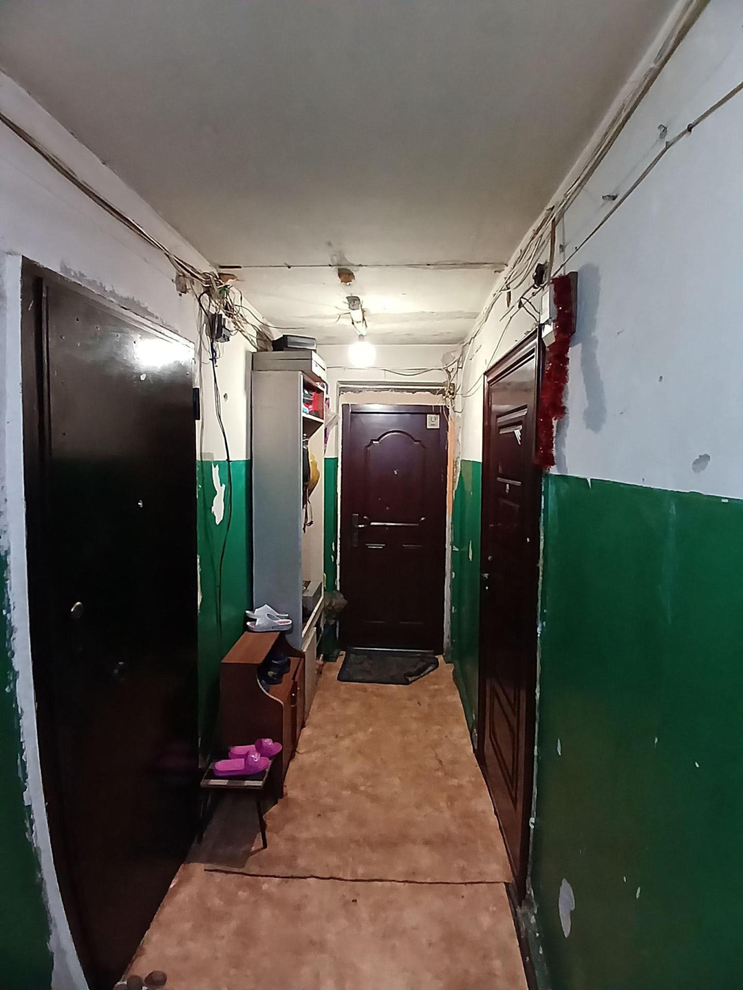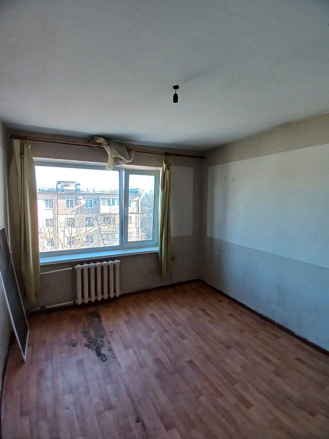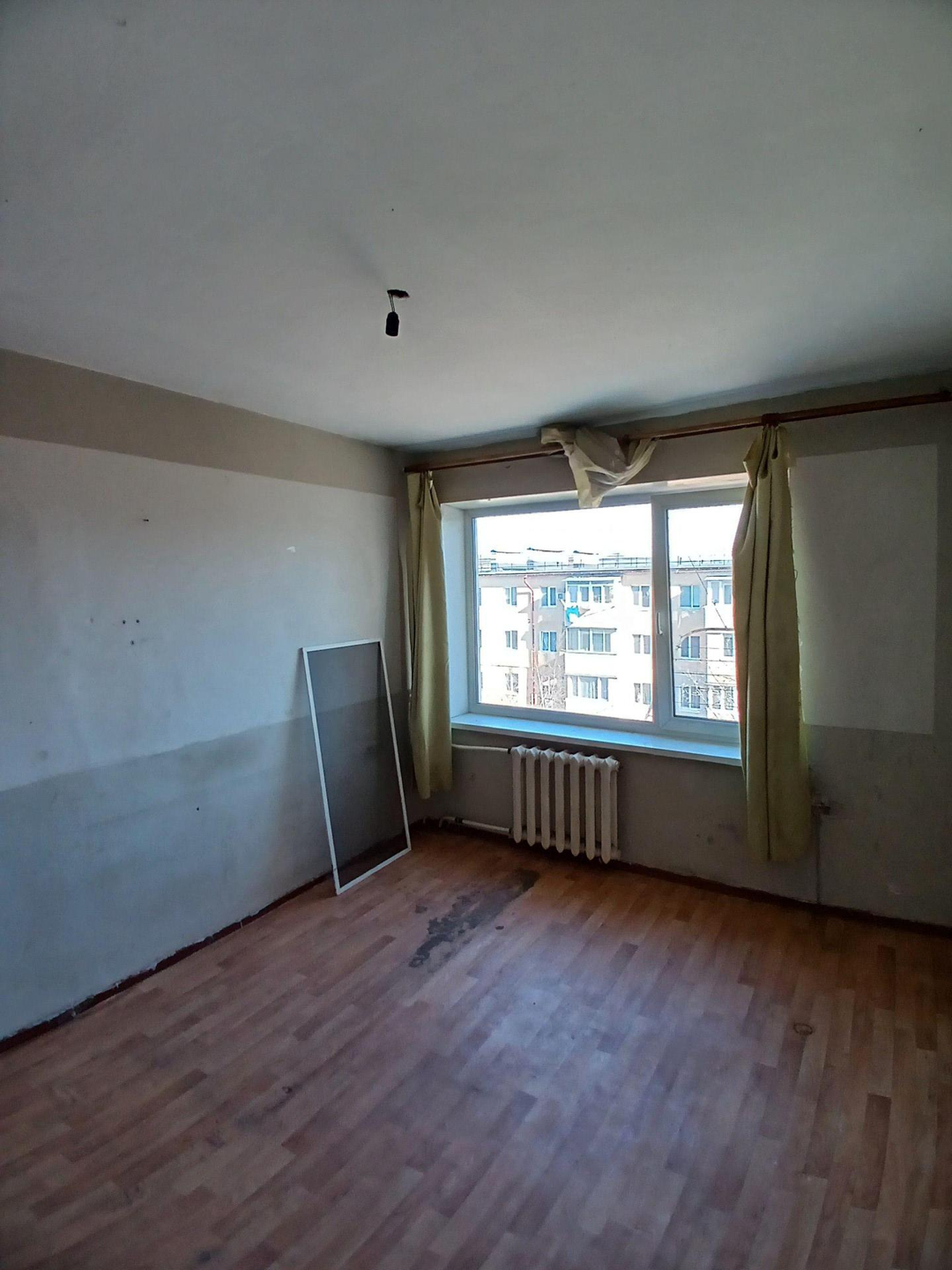 Железная дверь , линолеум , стены выровнены , новые окна . В комнате есть выброска. Хорошая комната .