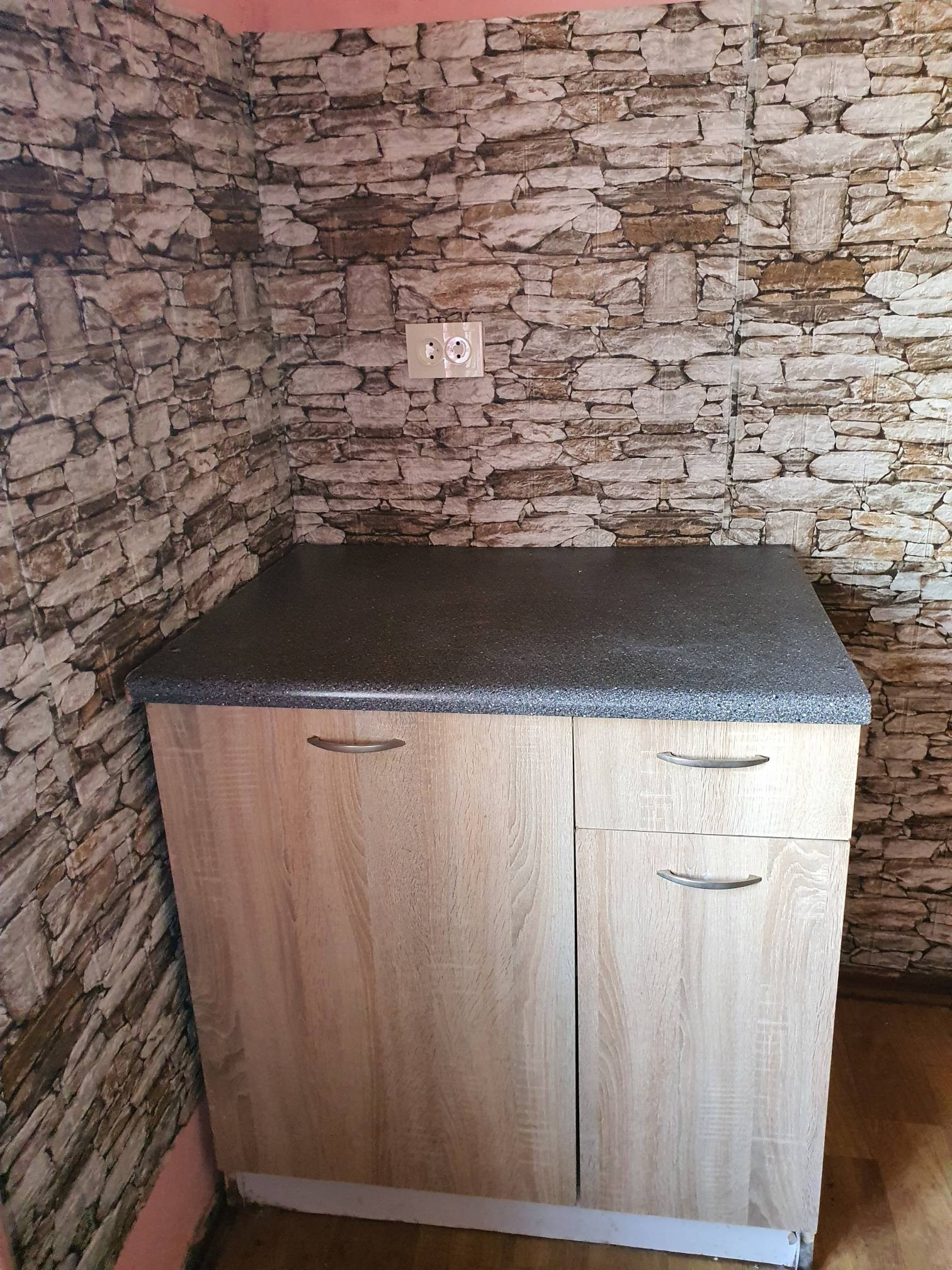 Место на кухне возле окна, место под стиральную машинку есть.