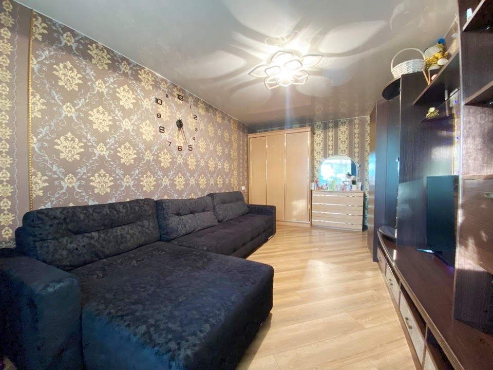 На полу теплый ламинат, выровнены стены. Натяжные потолки. С/у раздельный.
