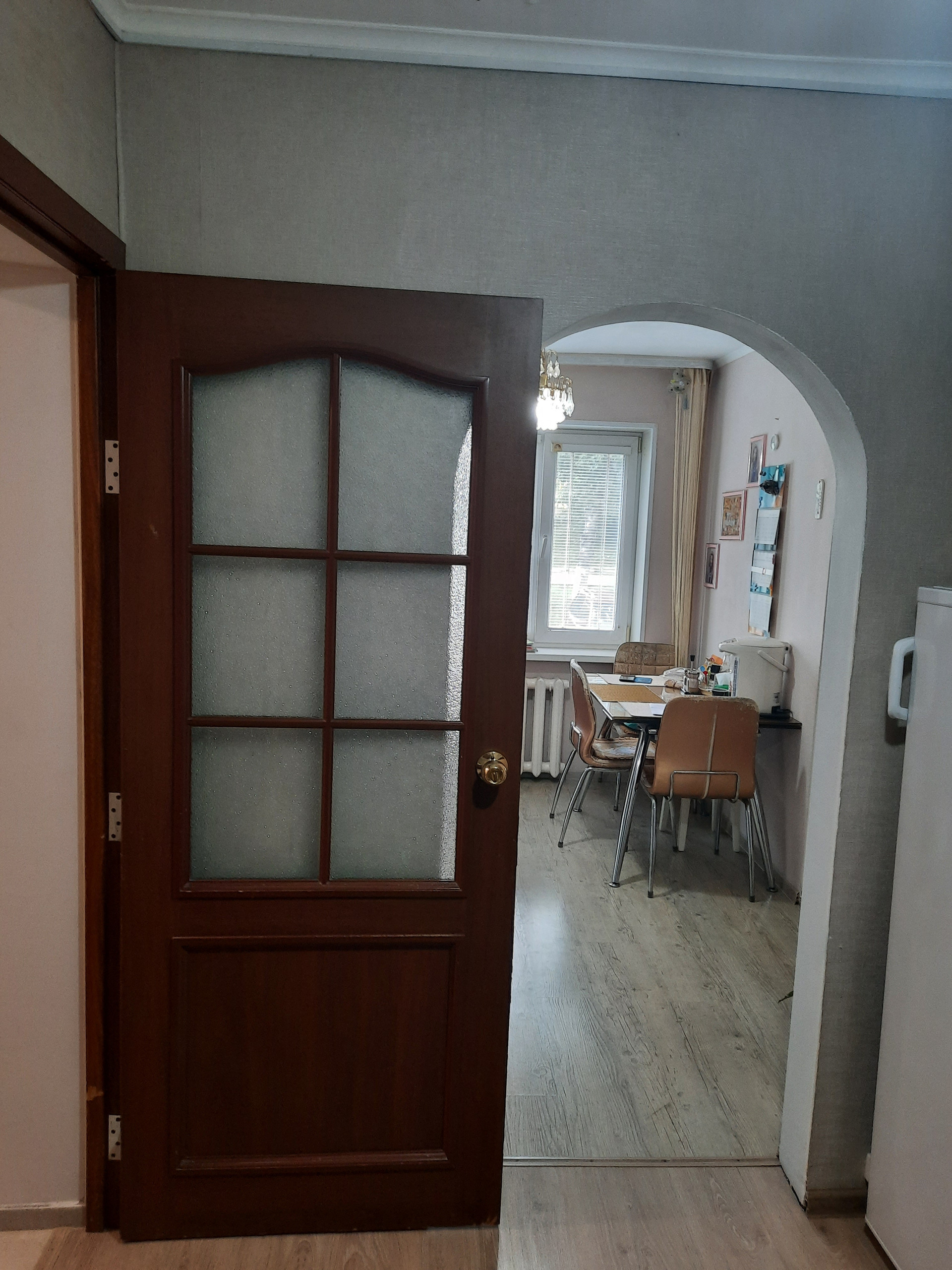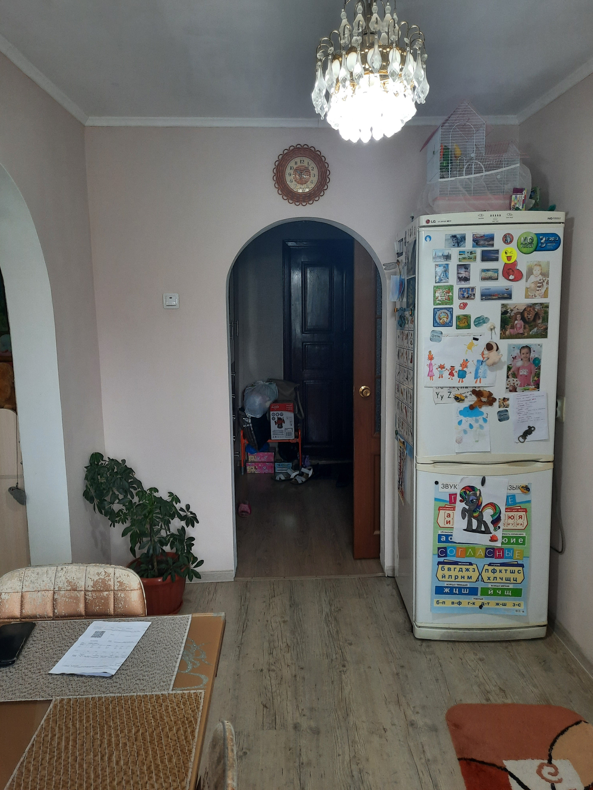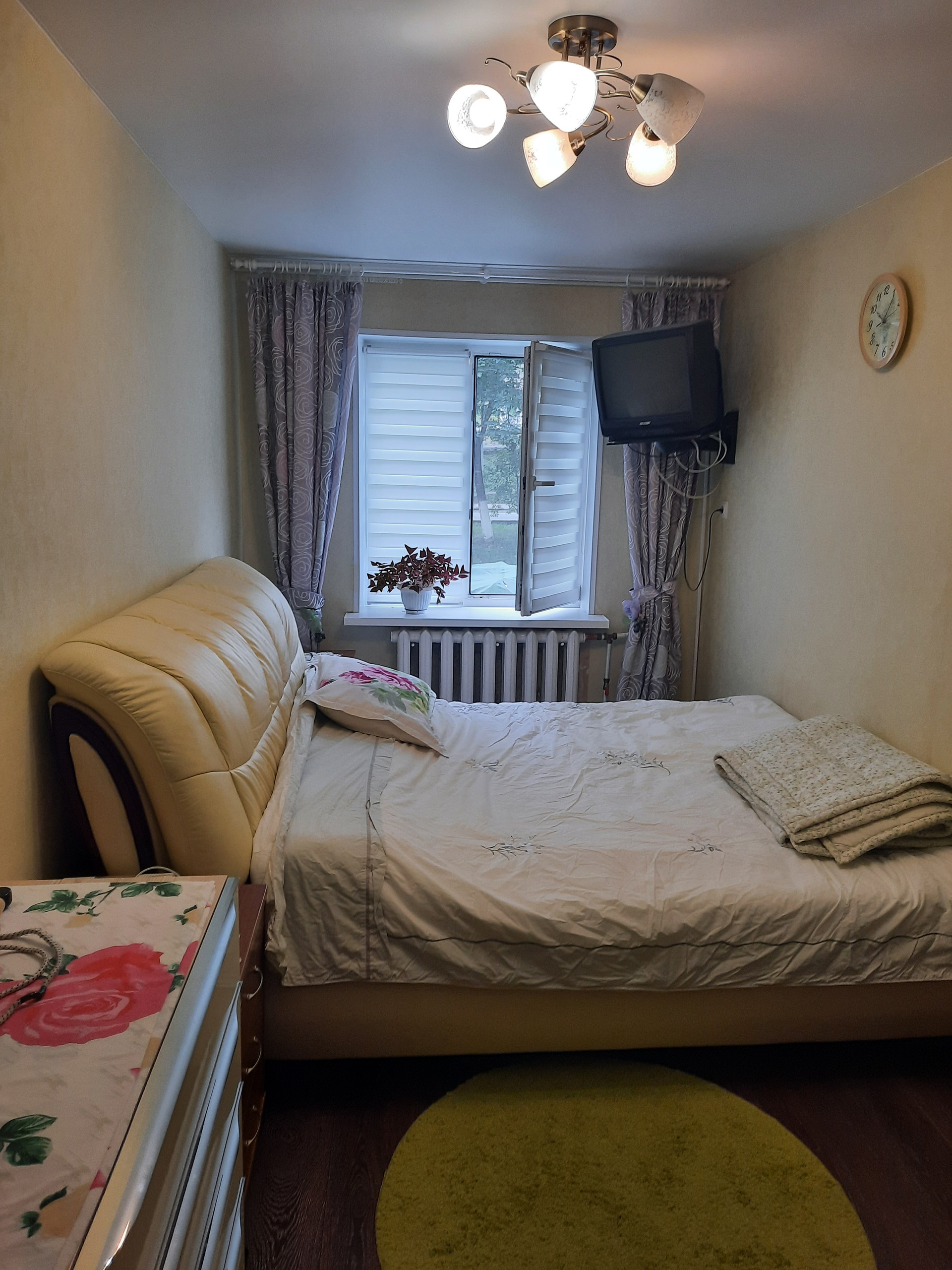 Трёхкомнатная квартира на первом этаже с отличным ремонтом и замечательной планировкой.  Квартира сухая, надёжно  изолированная от подвала, тёплая, везде большие пластиковые окна, радиаторы чугунные.  Сделан полностью ремонт: потолки и стены выровненные, в кухне и спальне натяжные потолки, ламинат на полу, большой сан.узел, одна комната оборудована под столовую. Квартира тёплая, солнечная. Рядом с домом школа, дет. сад, дом культуры. супермаркеты, остановка автобуса