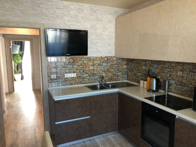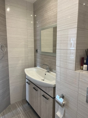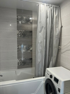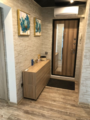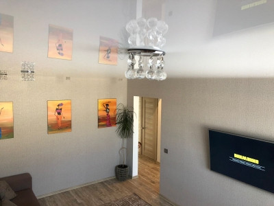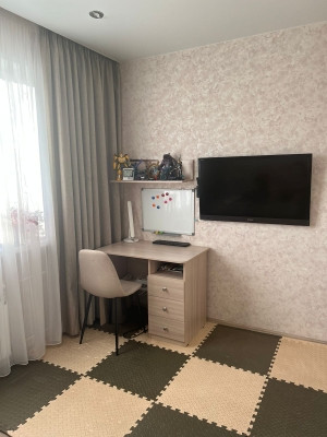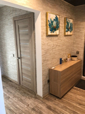 — В квартире сделан качественный ремонт с использованием дорогостоящих материалов. Натяжные потолки с софитами, ламинат, установлены межкомнатные двери, сан.узел в кафеле - тёплые полы.