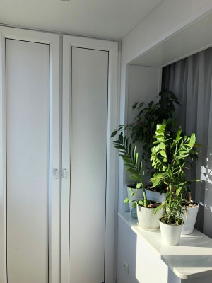 — Большая застекленная лоджия с двумя выходами: спальня и кухня-гостиная.