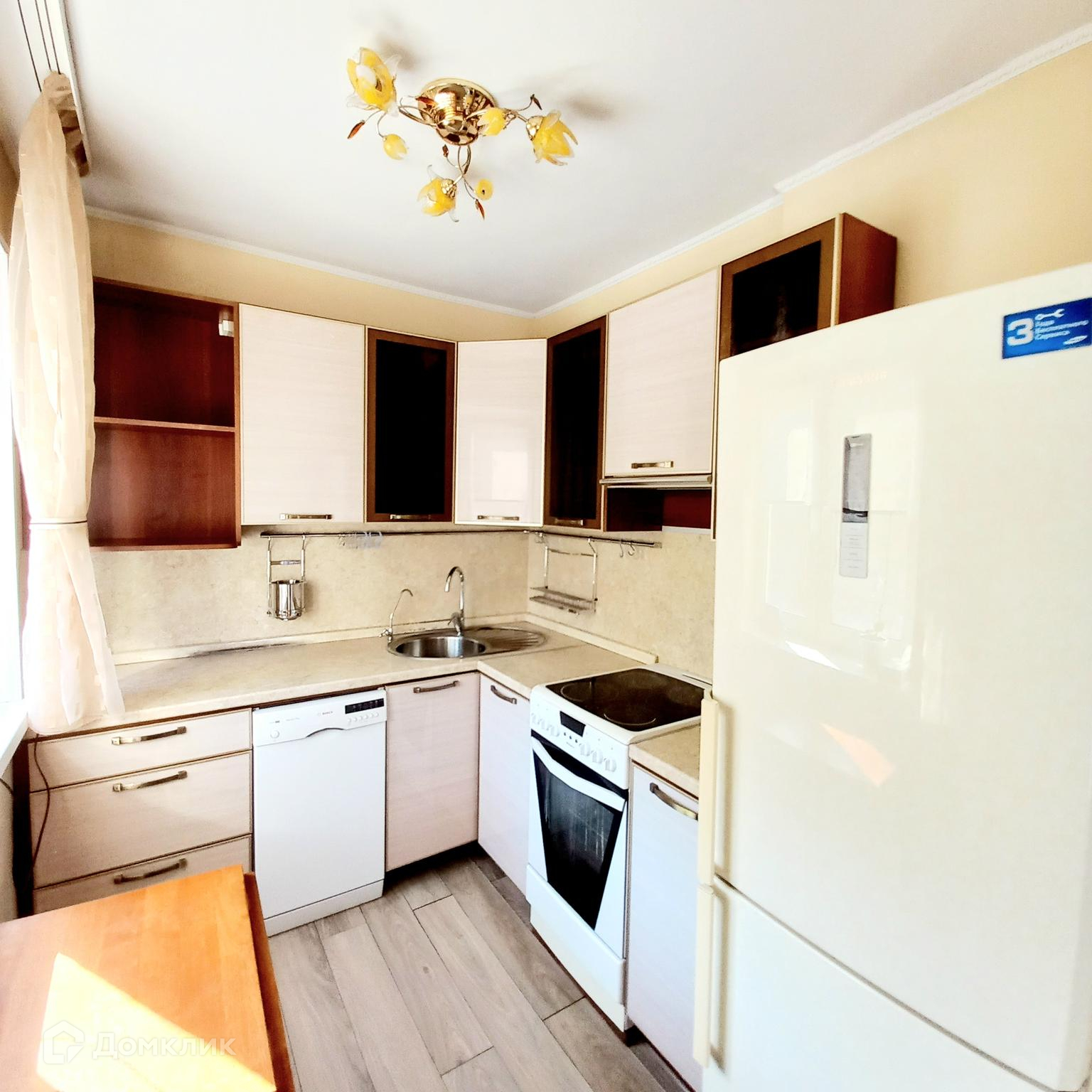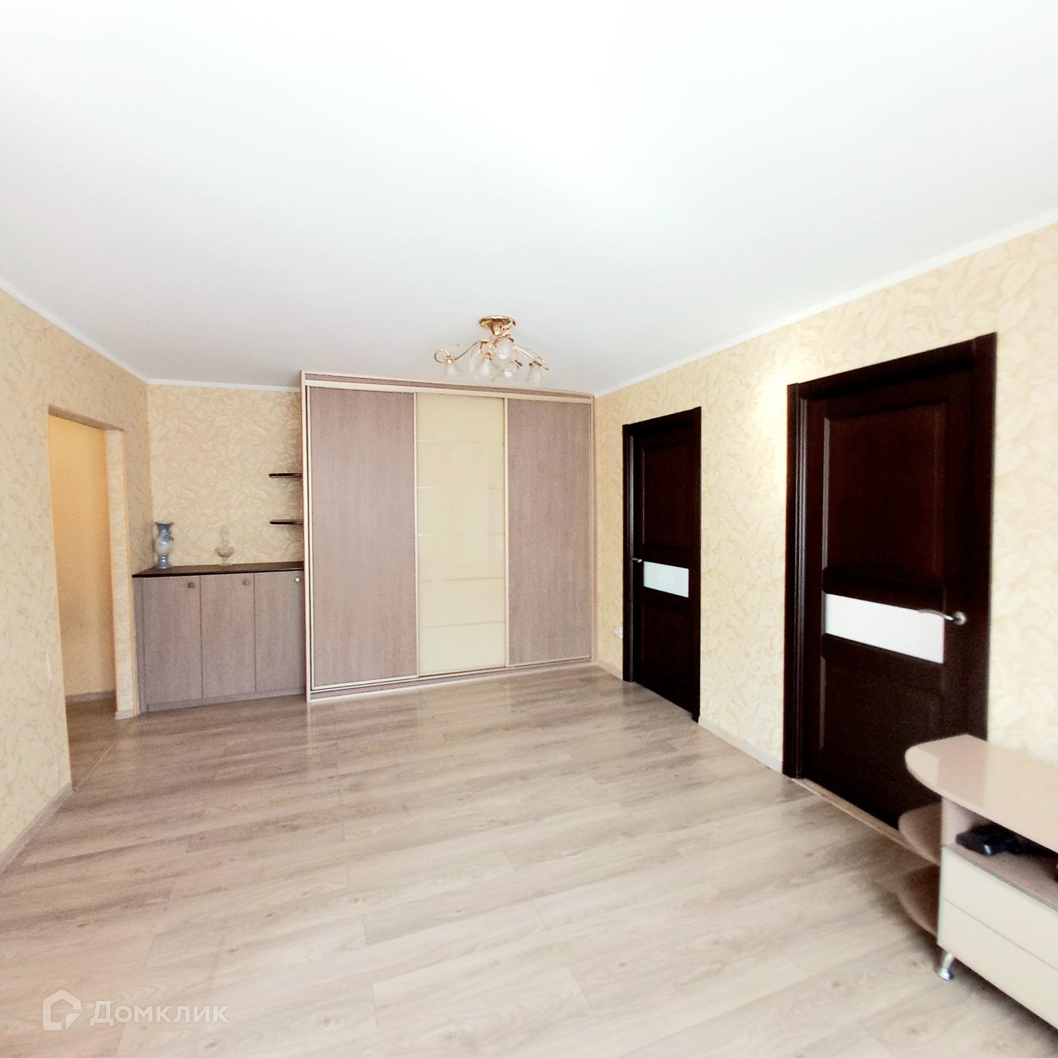 В квартире три раздельные спальни, кухня-гостиная, гардеробная, санузел совмещенный.