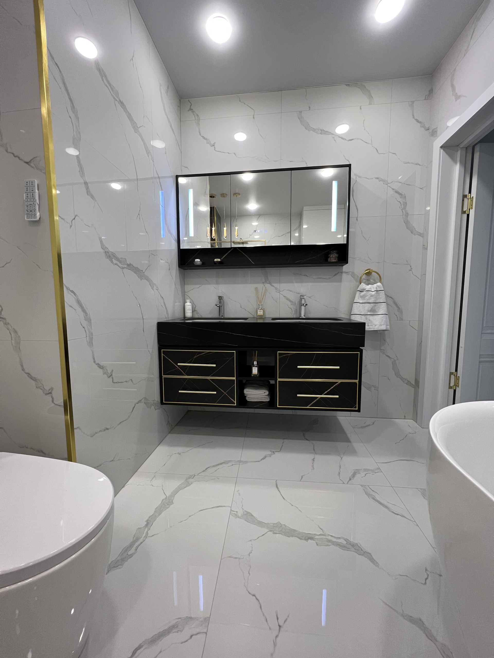 Шторы, ковры, освещение, сантехника, мебель, предметы интерьера и даже мебельная фурнитура- все заказывалось из разных стран под этот проект.