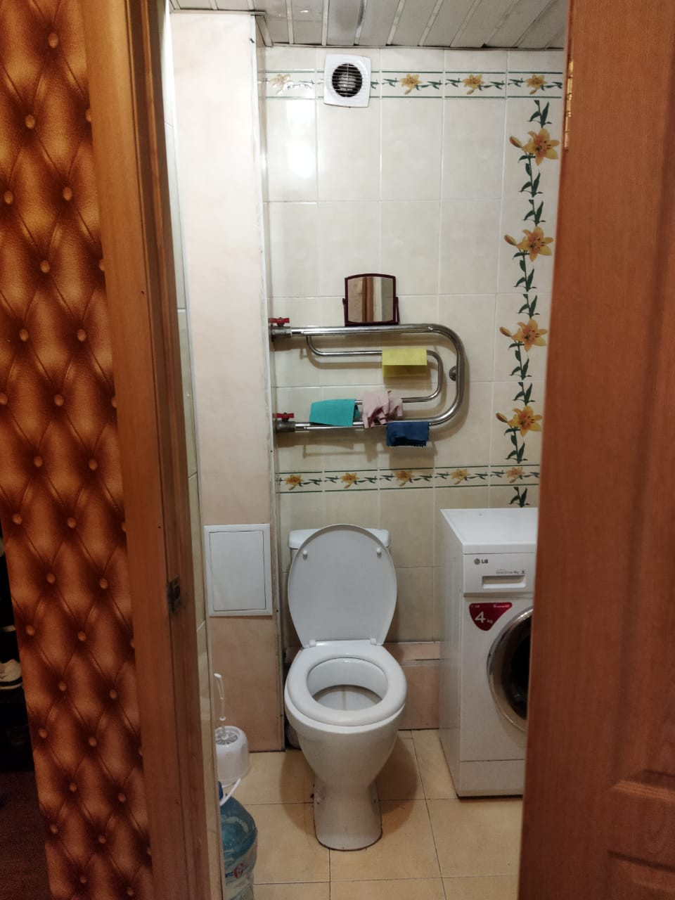 Солнечная, ухоженная квартира, балкон застеклен деревянными рамами, окна КБЕ, на полу линолеум, батареи чугунные, в санузле кафель 5 лет.