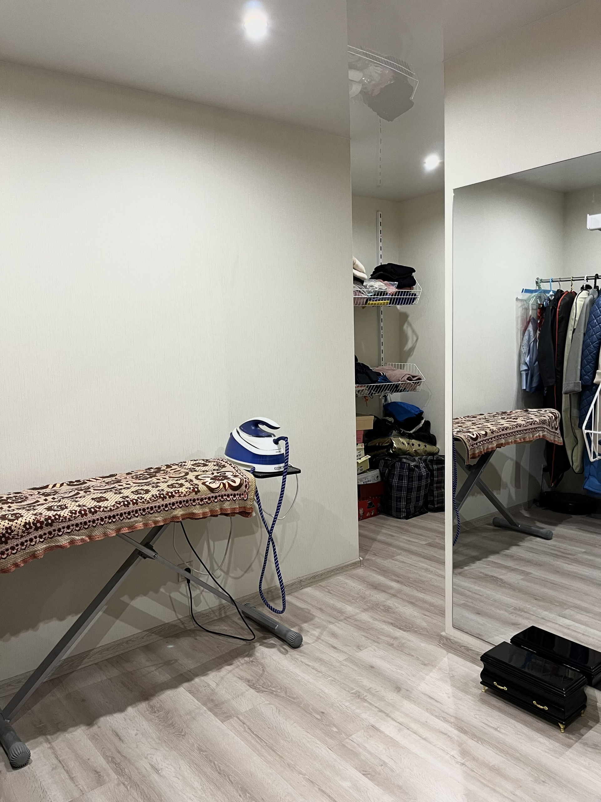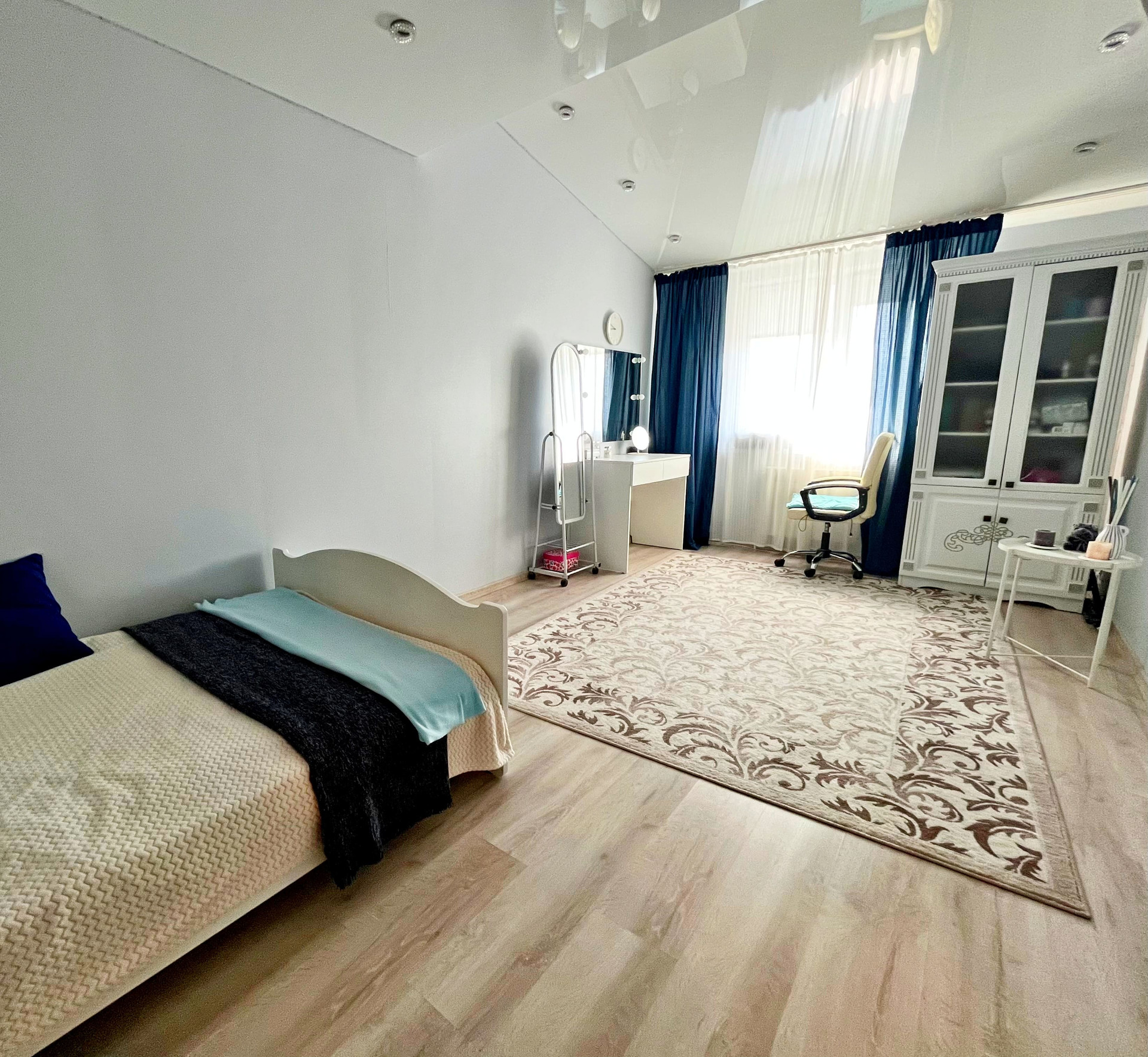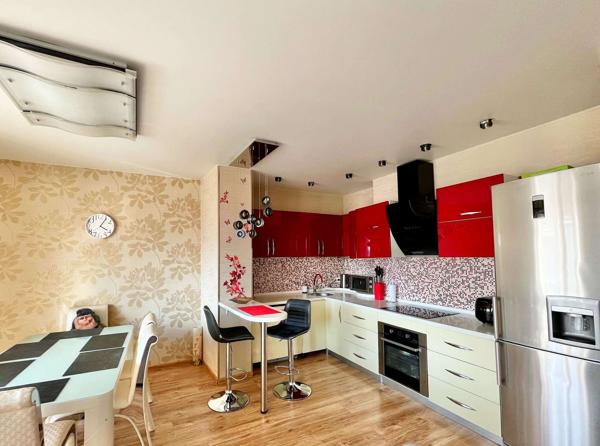 Входная дверь Гардиан (с хорошей шумоизоляцией и интересным 3D дизайном), качественные межкомнатные двери, натяжные потолки, софиты, красивые светильники, на полу качественный ламинат, 2 кондиционера.