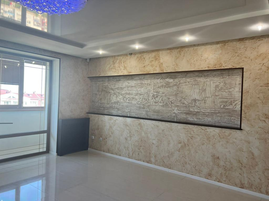 + стены: фрески на стенах из декоративной венецианской штукатурки, на первом этаже.
