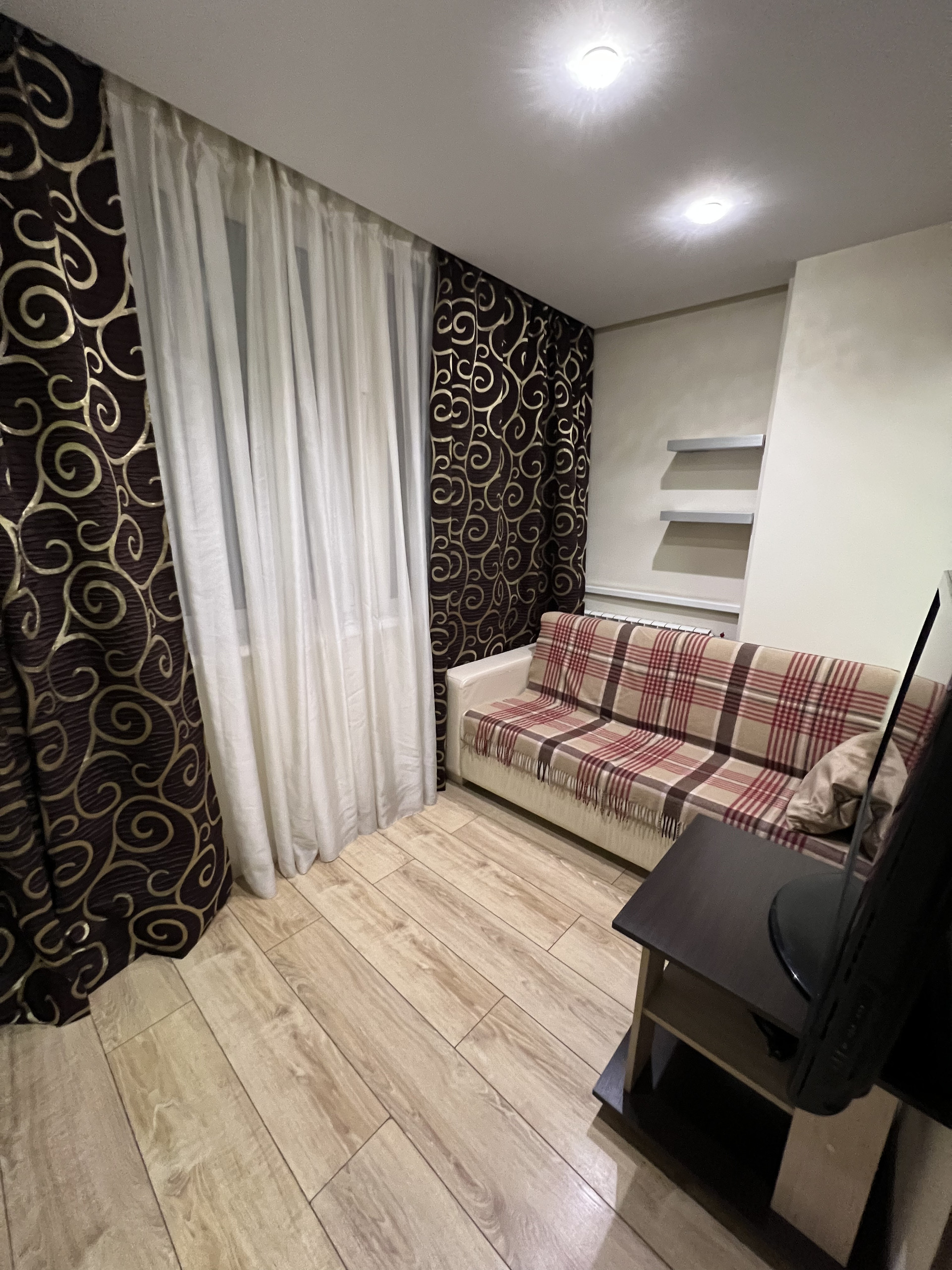 Спальная комната , погружает в непрерывный сон и полный отдых . Комфортабельный матрас , на кожаном диване с мягкой спинкой . Так же теплый пол и кондиционер .