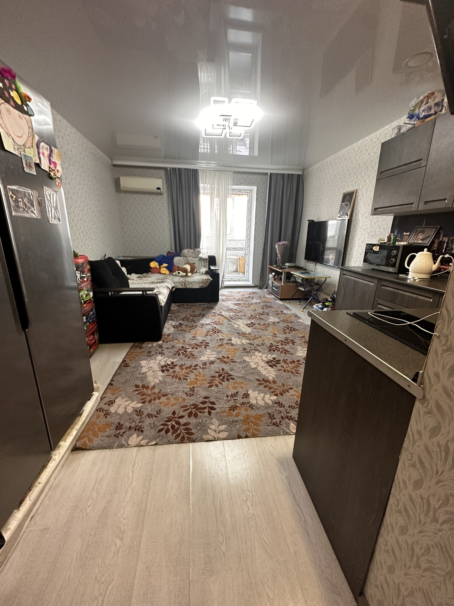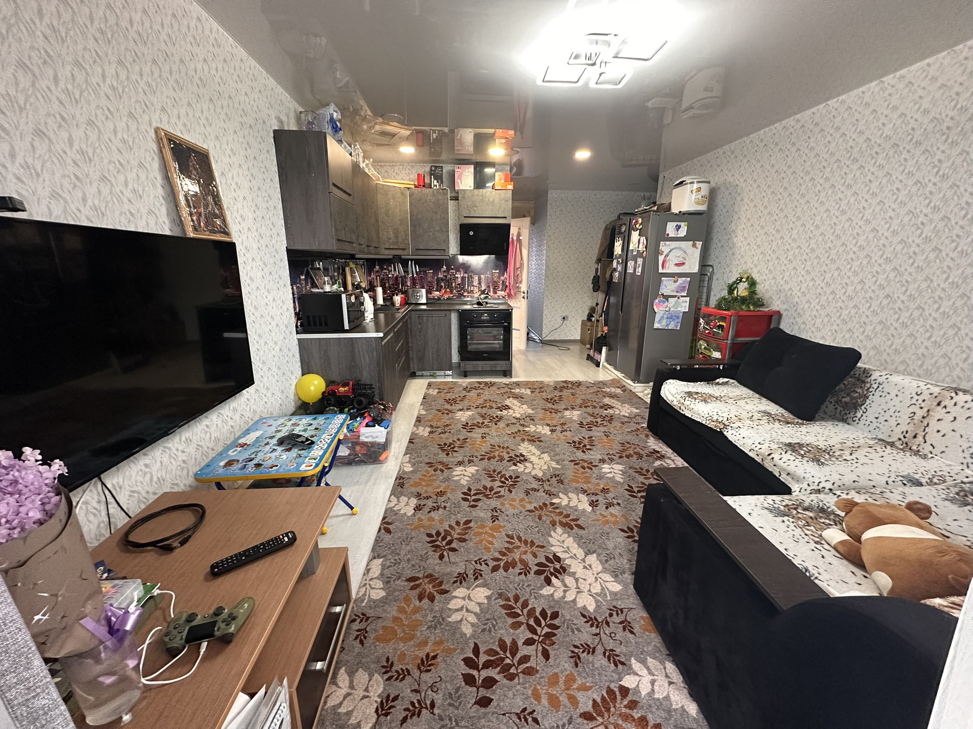 Встроенная кухня, холодильник, телевизоры стиралка, микроволновая печь.