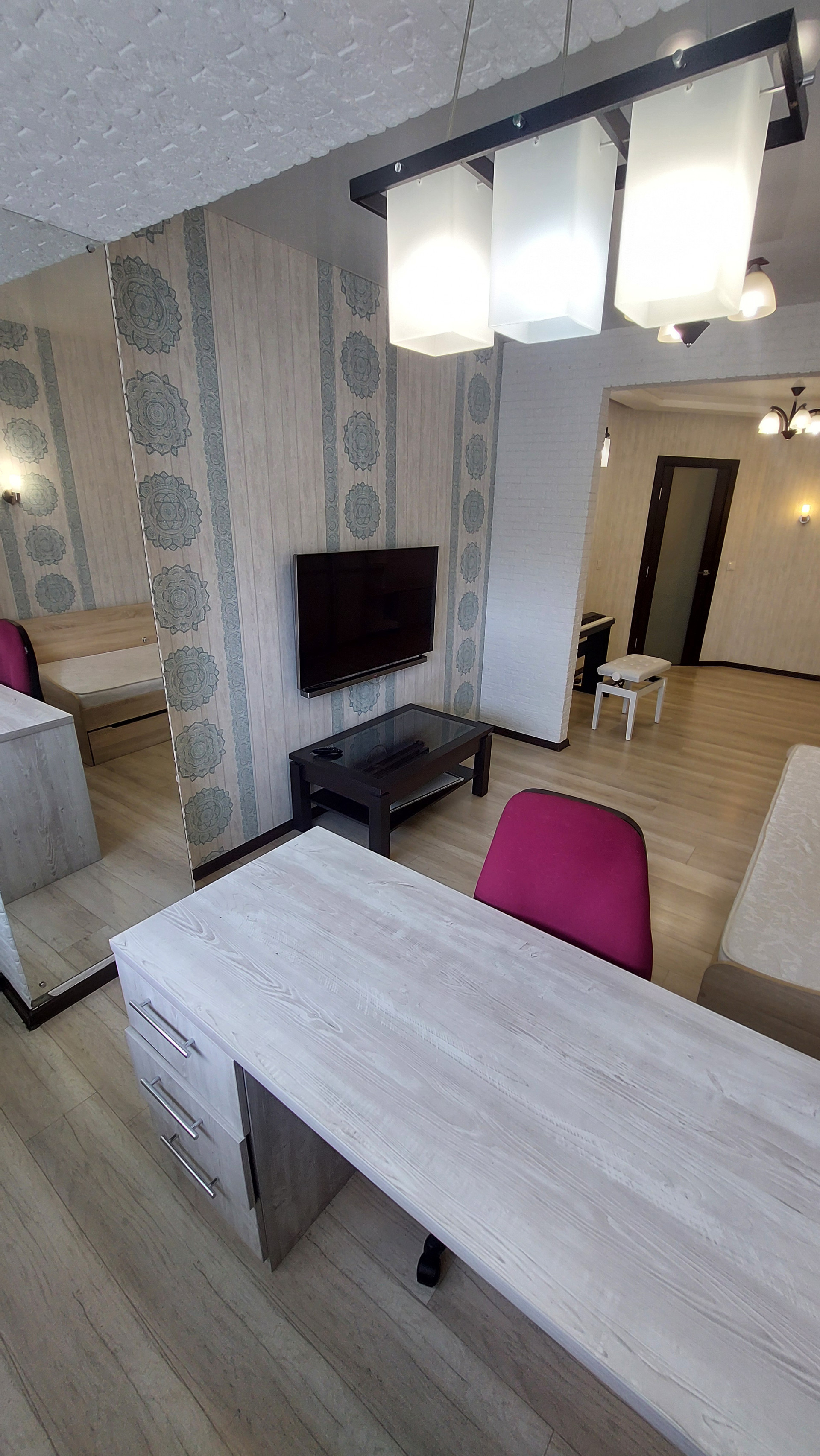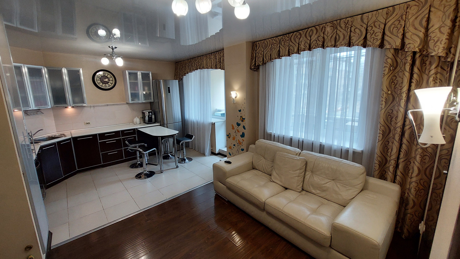 В квартире остаются все потолочные и настенные светильники, шторы, рулонные жалюзи, разные предметы интерьера.