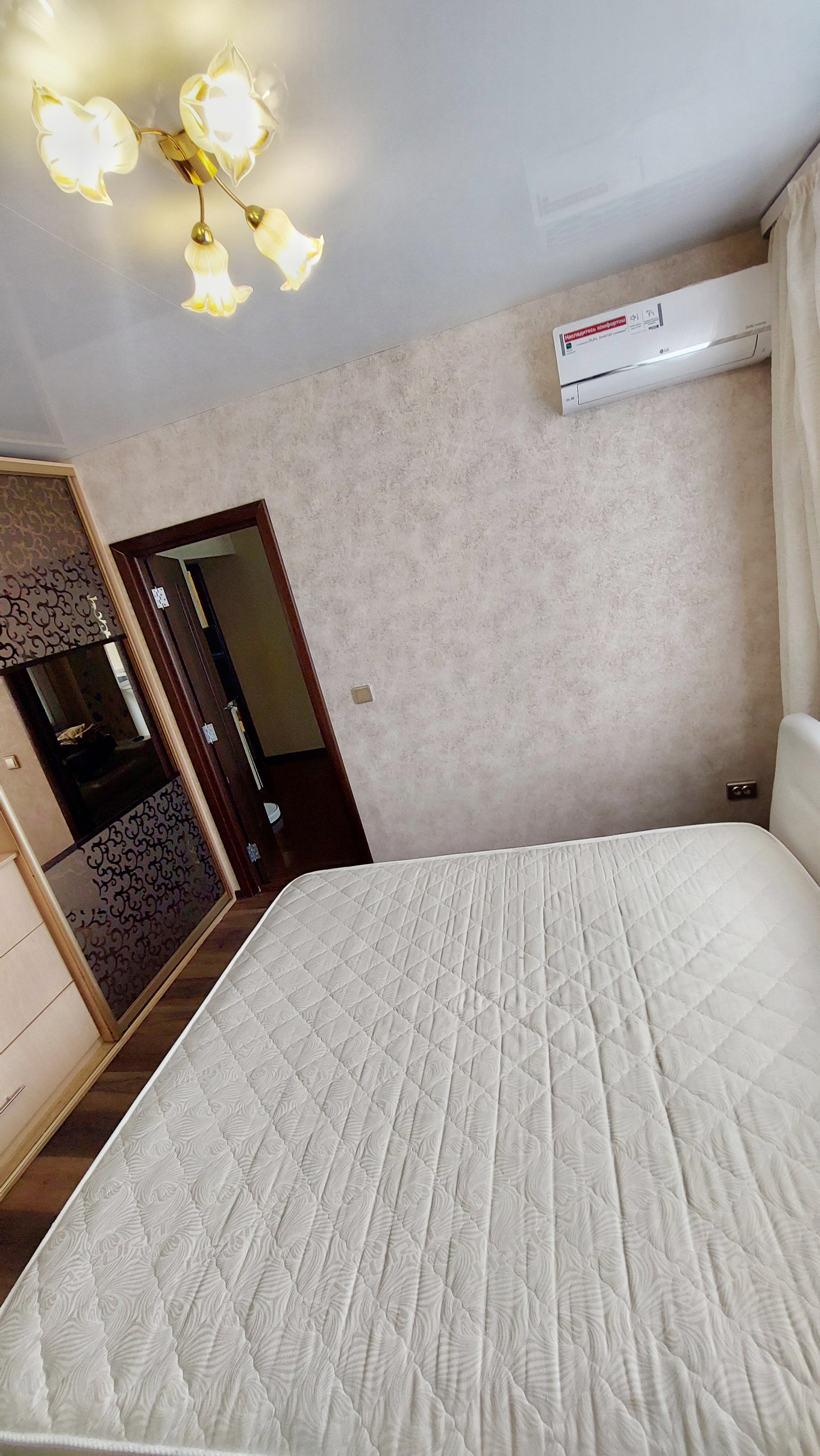 Комната 1: встроенный шкаф, кондиционер, кровать
