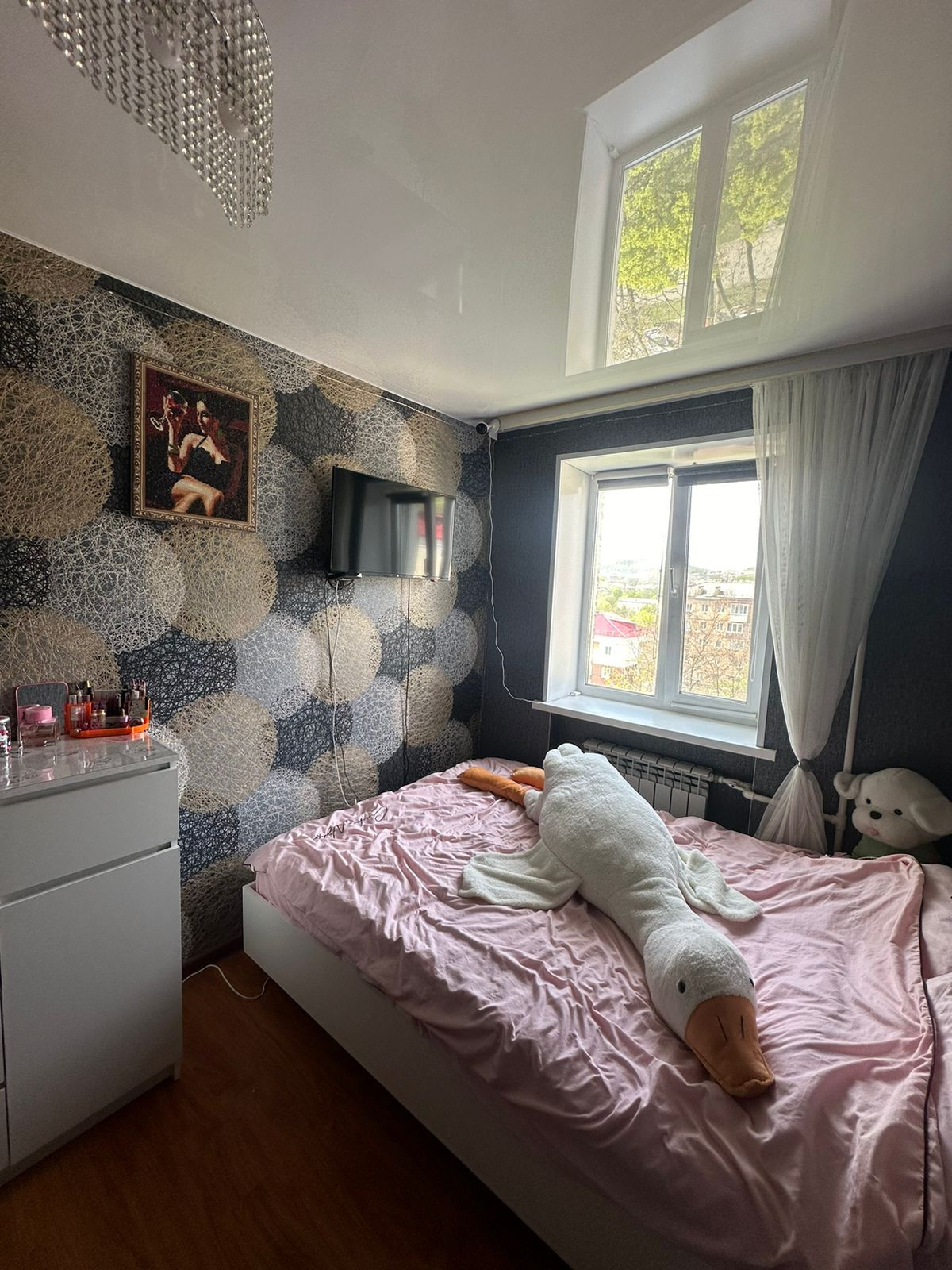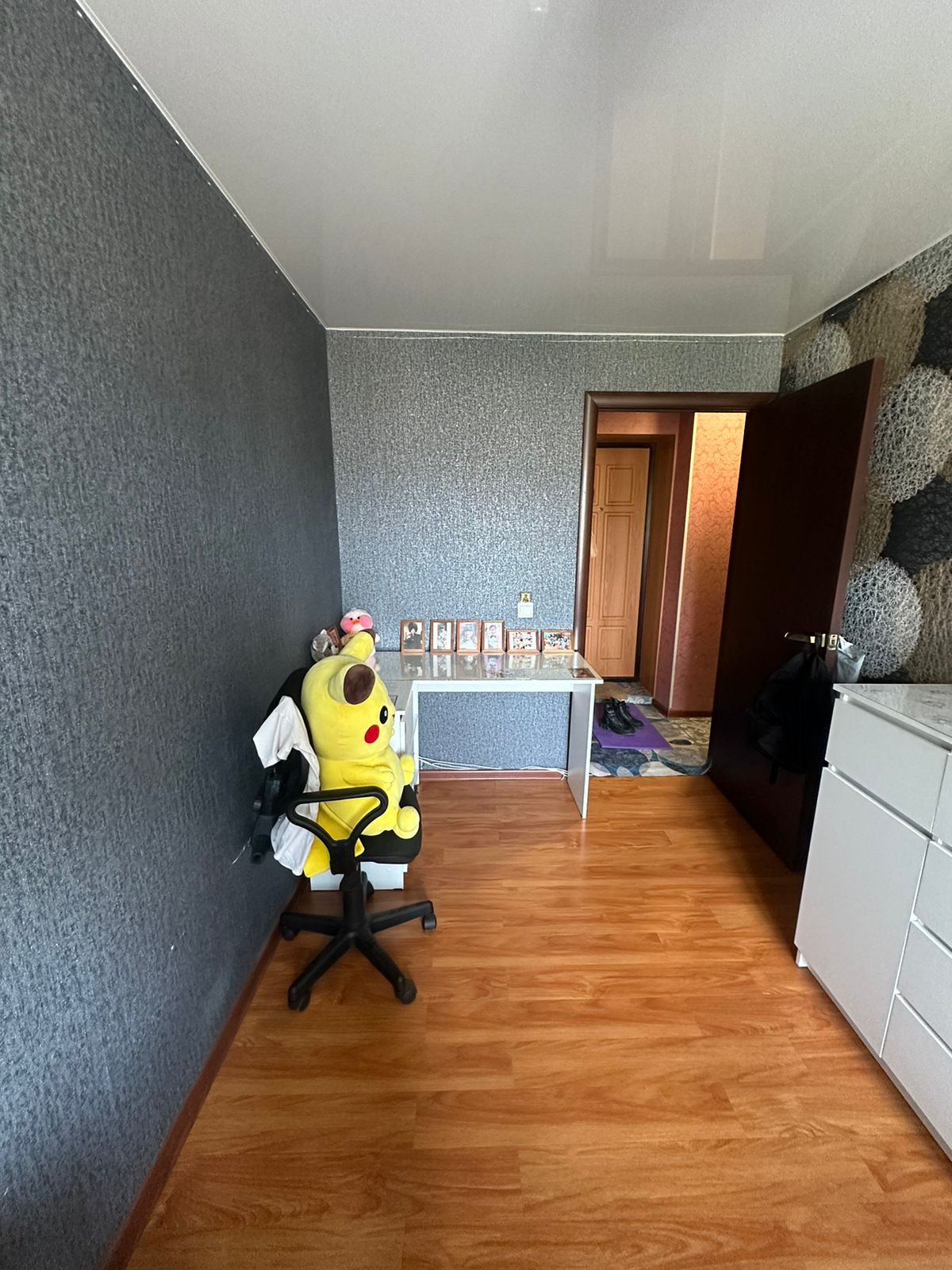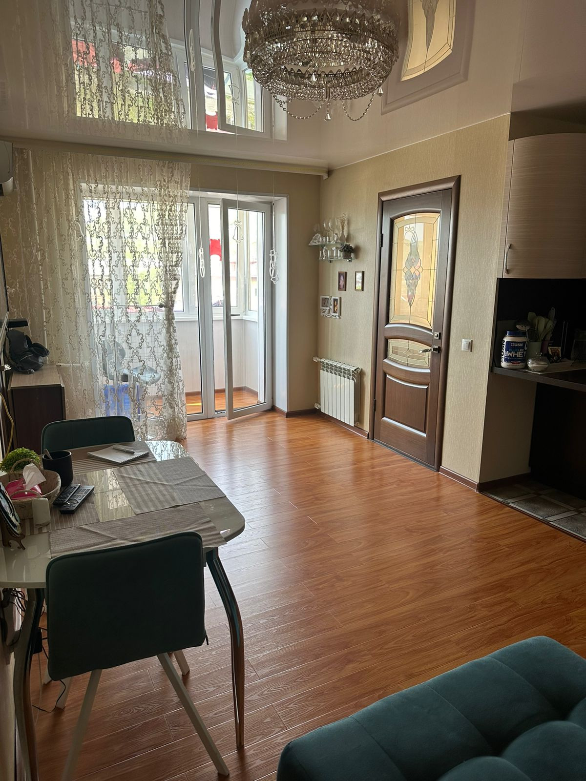 В квартире всегда солнечно и тепло. Она не требует дополнительных капиталовложений: качественная входная дверь, ламинат, натяжной потолок, выровненные стены.