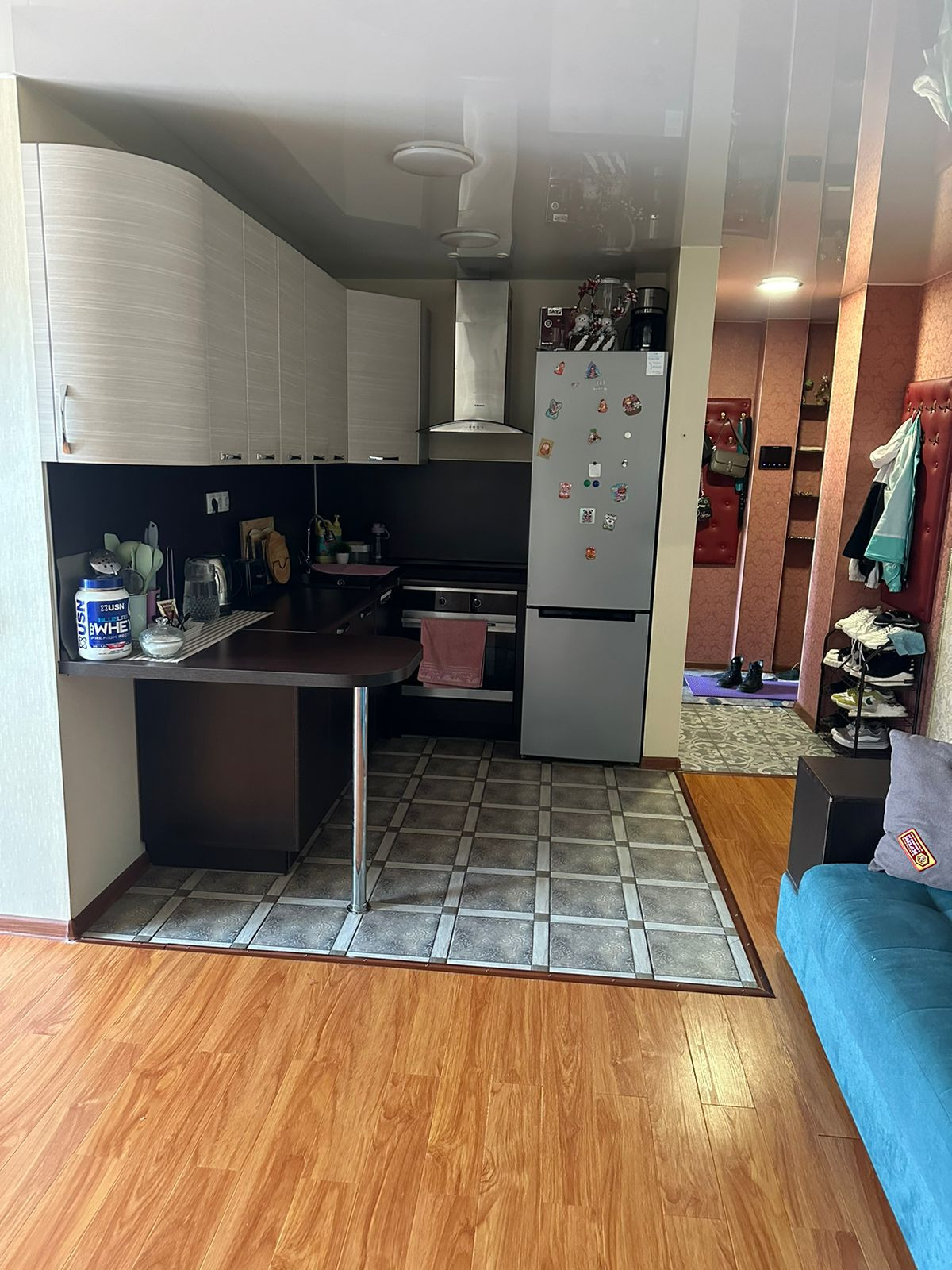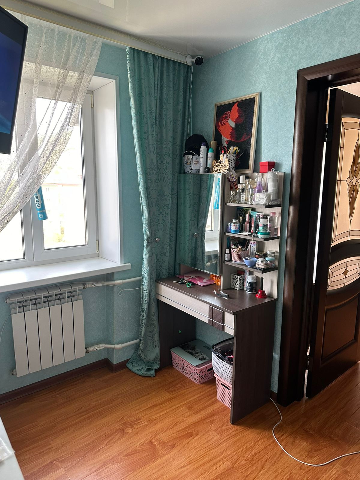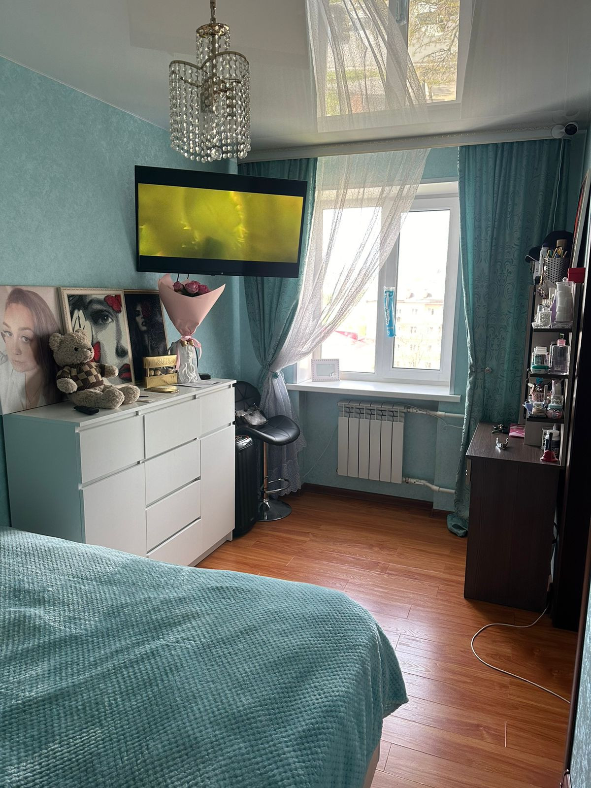 В квартире всегда солнечно и тепло. Она не требует дополнительных капиталовложений: качественная входная дверь, ламинат, натяжной потолок, выровненные стены.
