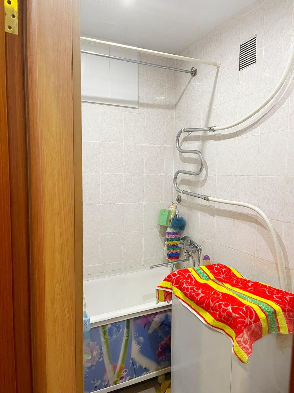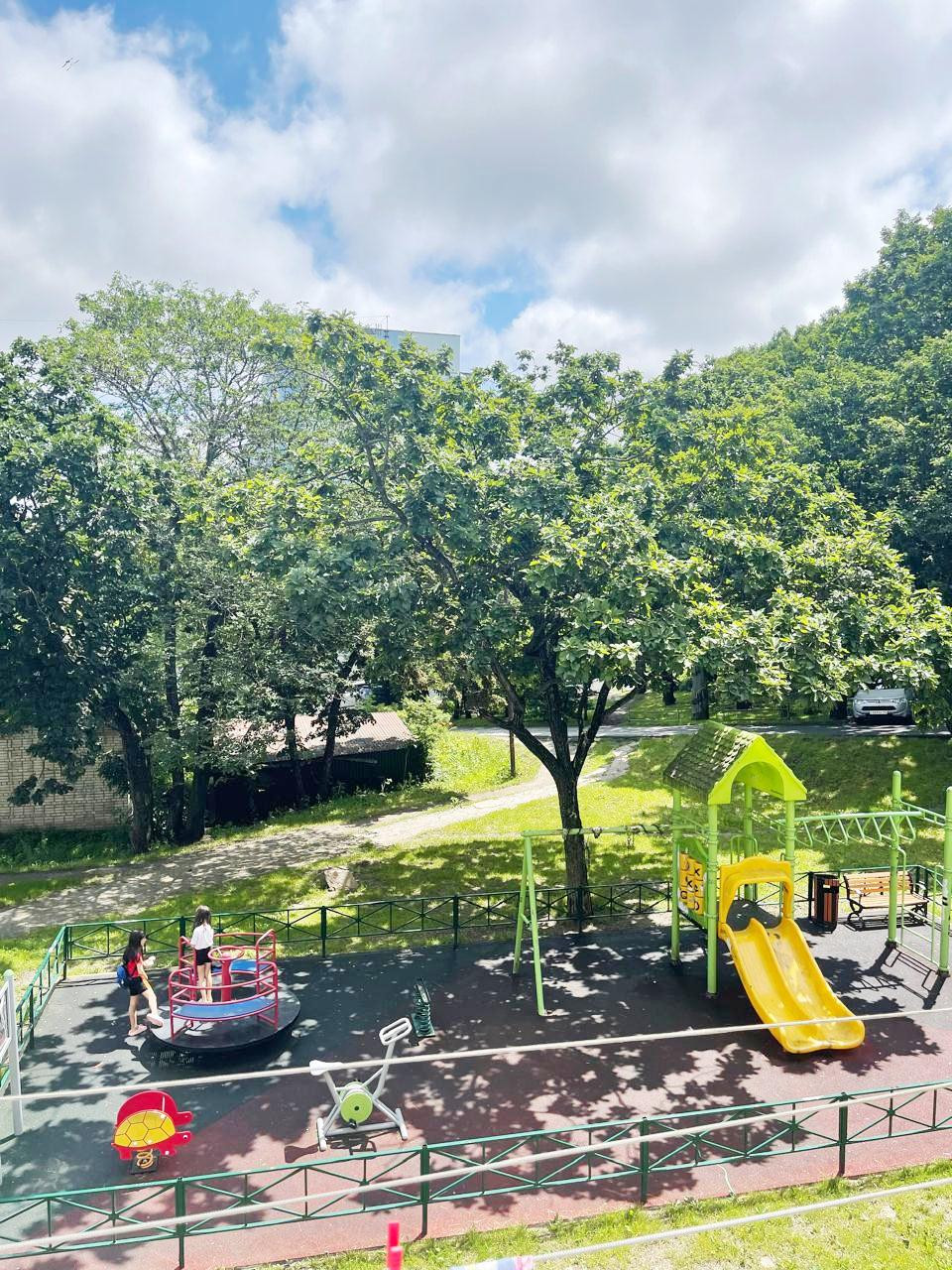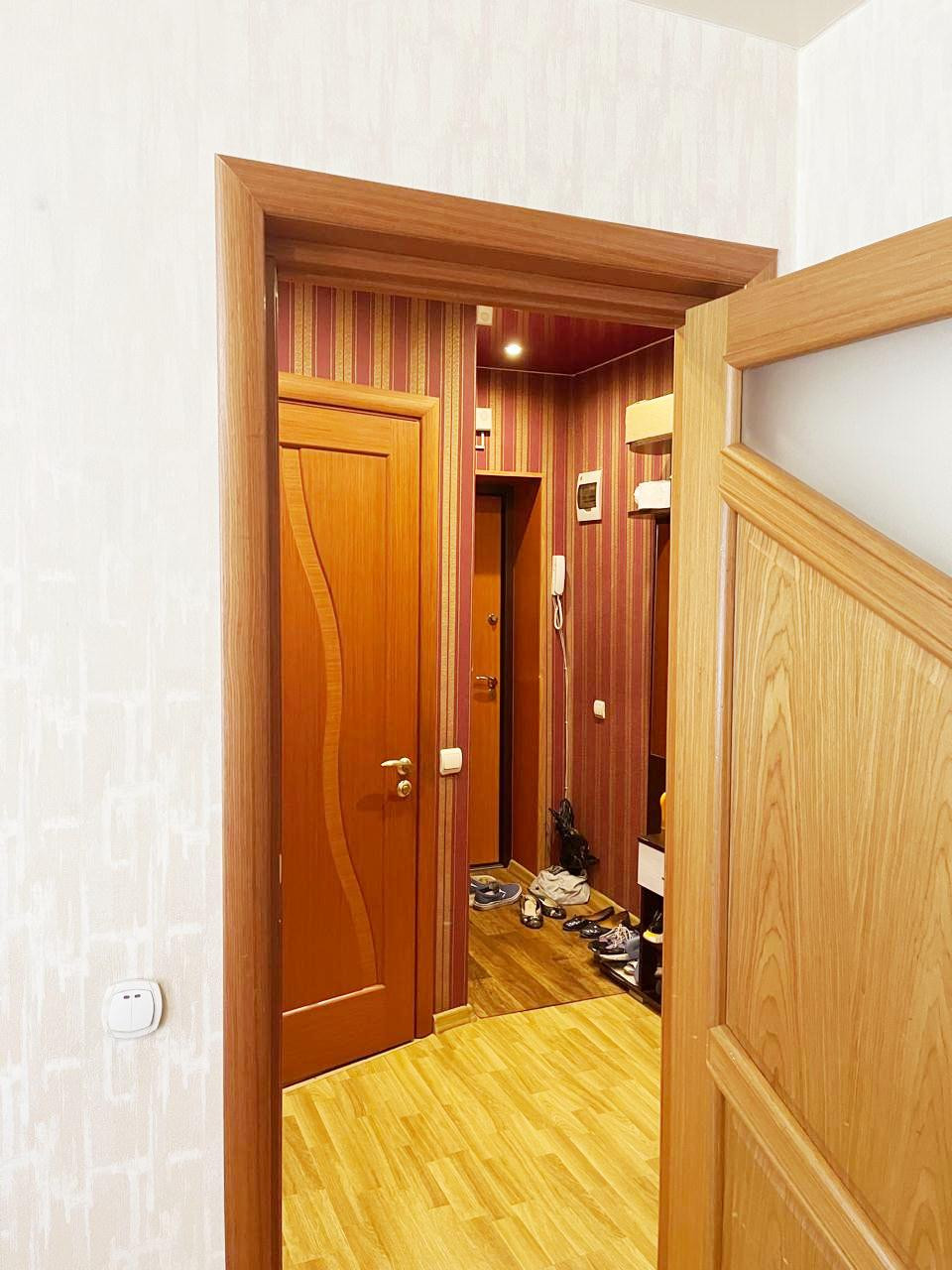 Домофон, на доме установлен теплосчетчик, ухоженная придомовая территория, места для парковки машин, детская и спортивная площадки во дворе.