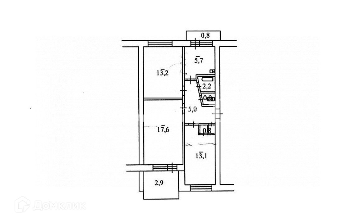 Жилая площадь 39.77 м2