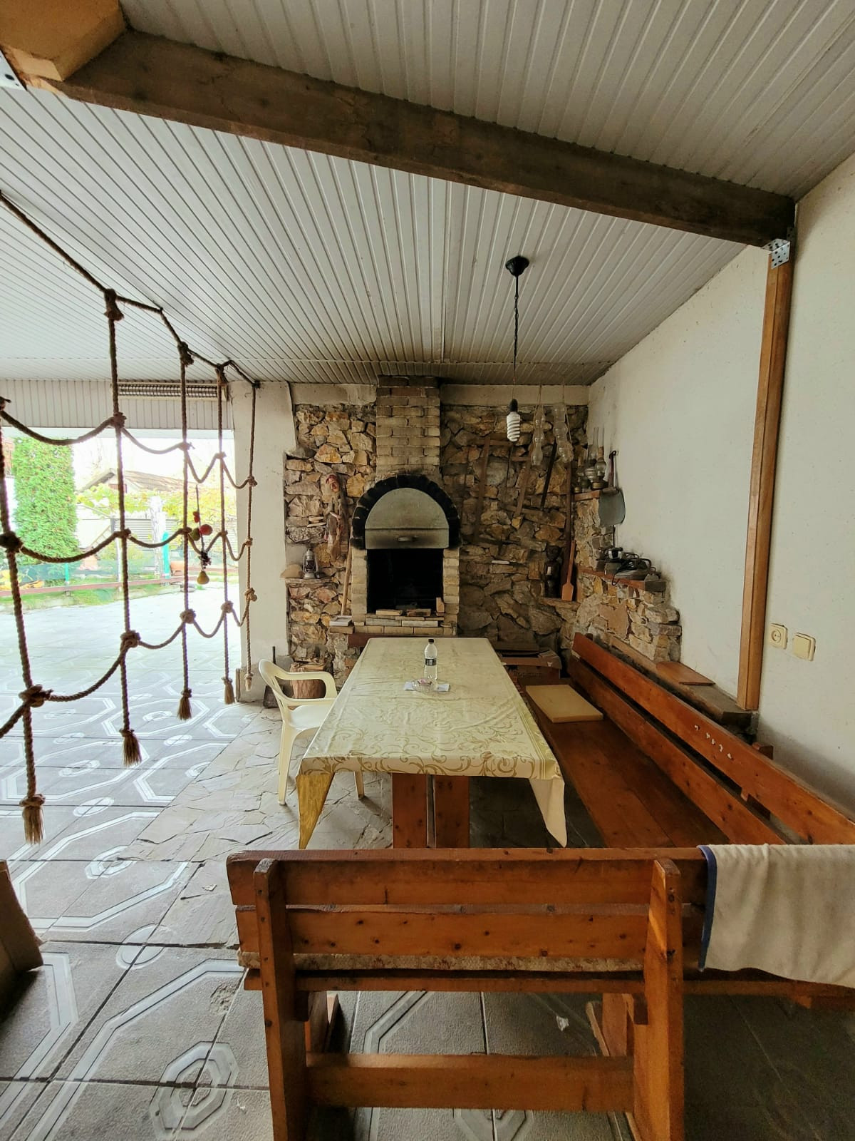 На первом этаже большой зал, спальня, кухня.