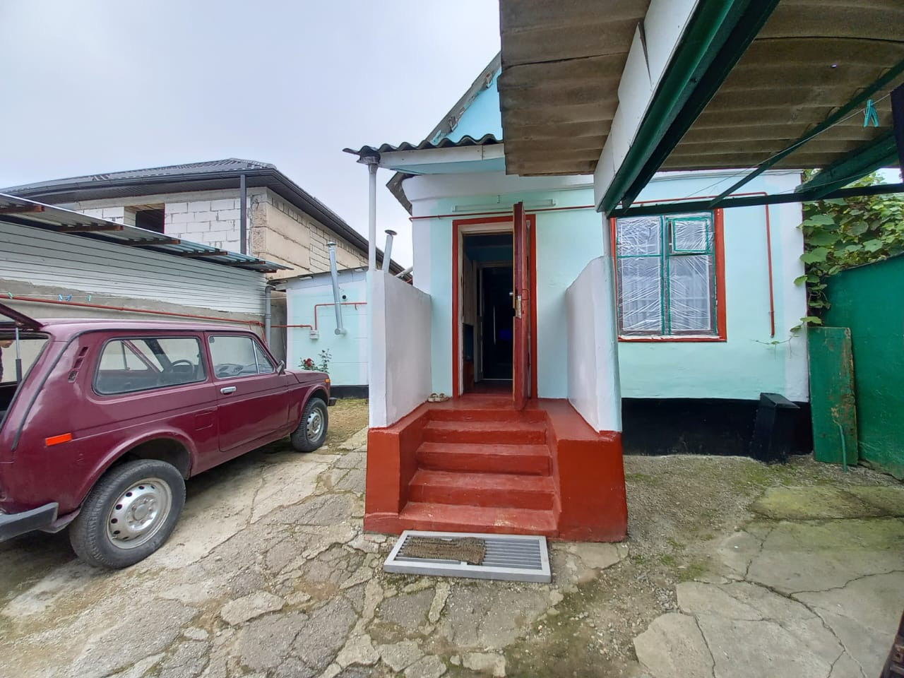 Во дворе помещаются две легковые машины.