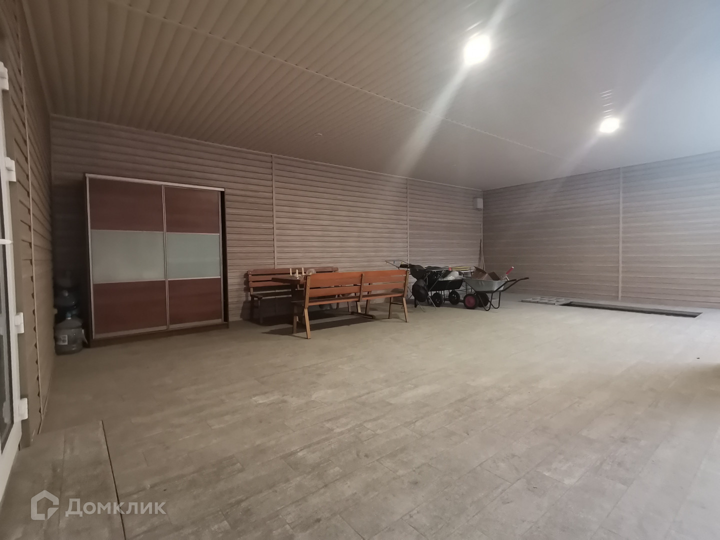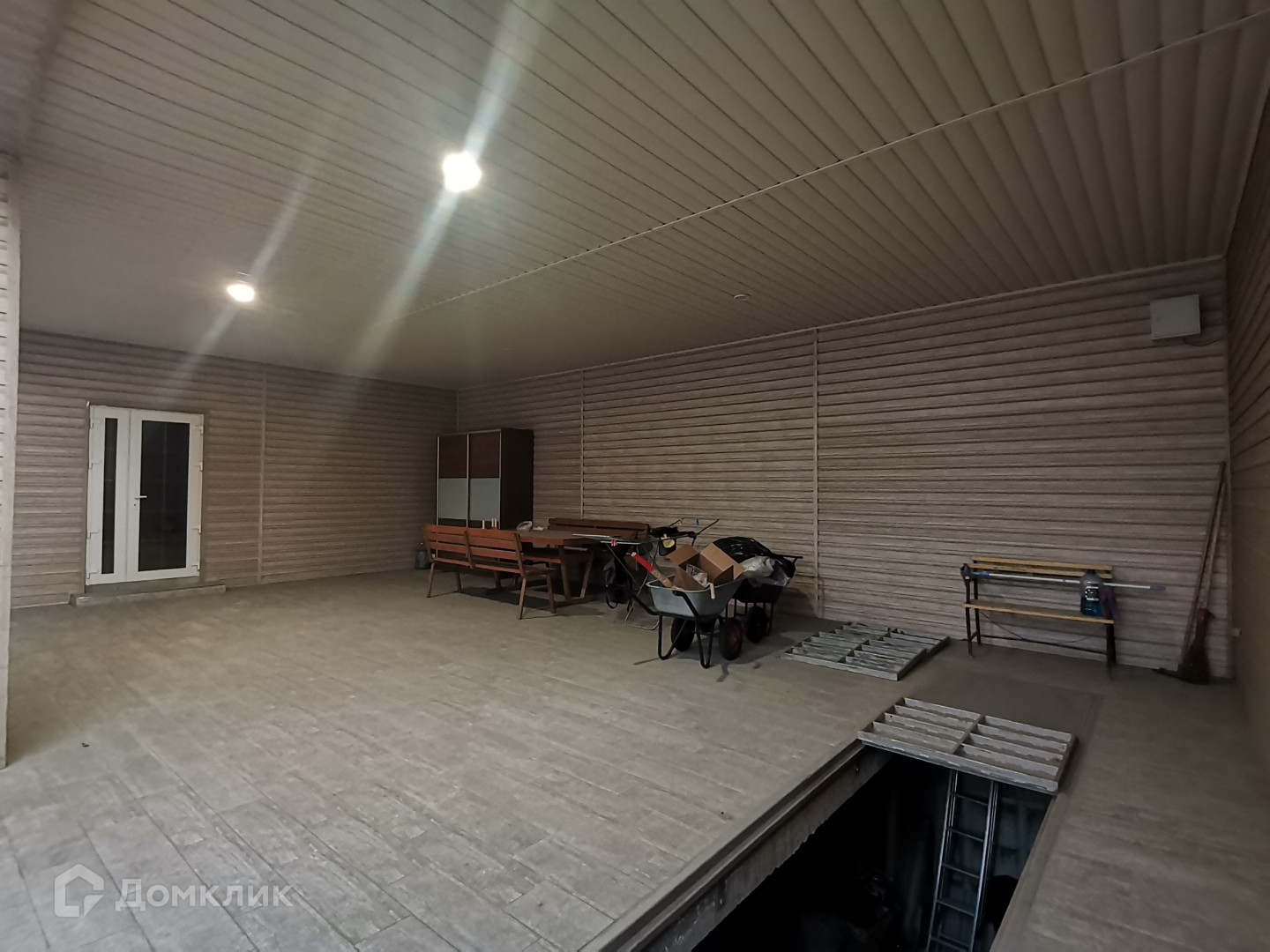 Под навесом на всю длину имеется просторное подвальное помещение.