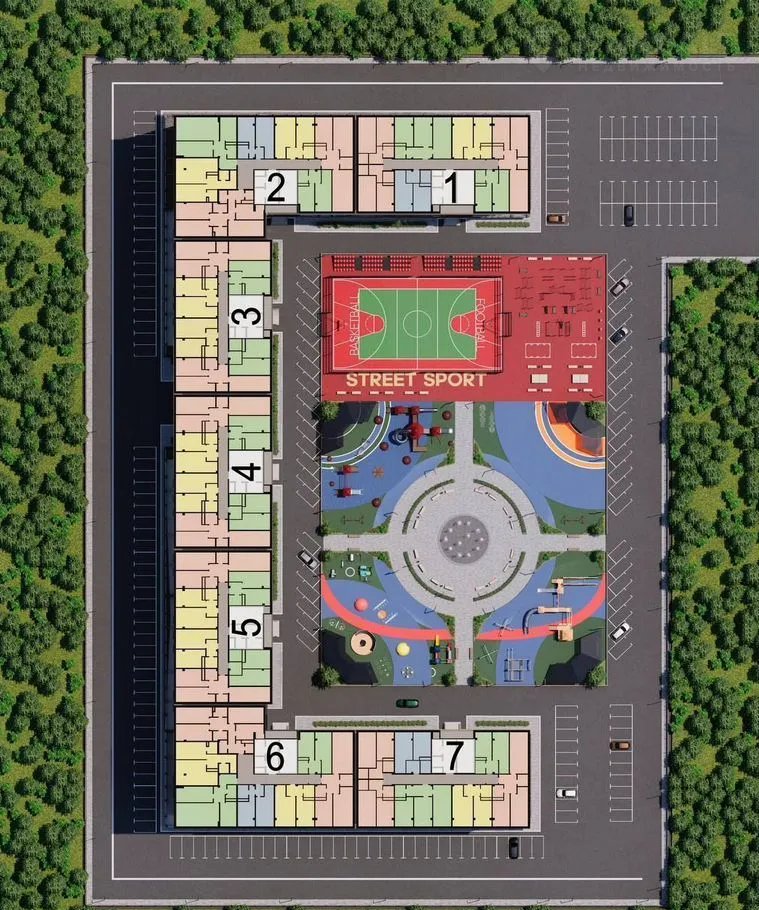 • Подземный паркинг на 270 мест — комфорт и безопасность для вашего авто.