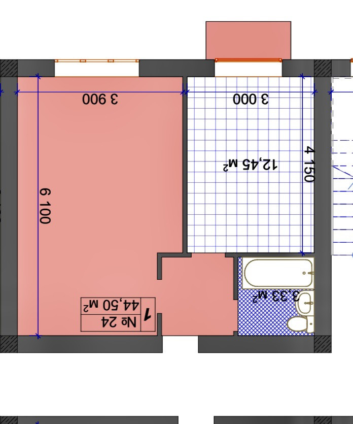Общая площадь 44.5 м2