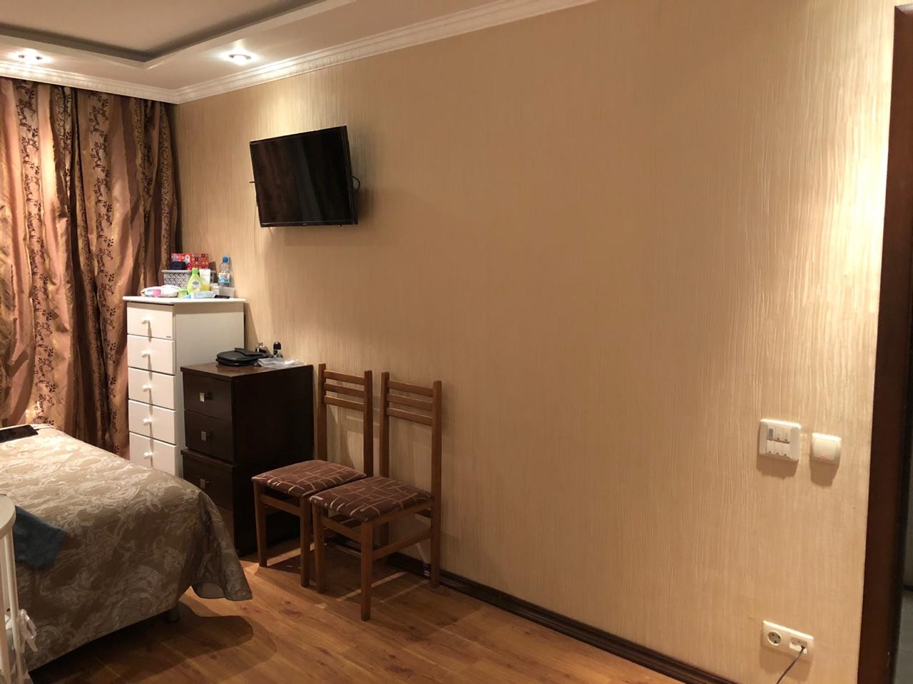 Квартира с дизайнерским ремонтом, состояние отличное. В комнате стоит большой и вместительный шкаф купе.  Мебель, итальянская встраиваемая техника входит в стоимость. В квартире автономное отопление, стоит котел. Железная входная дверь, с отделкой из дерева с двух сторон, сейфовый надежный замок. Подъезд чистый, ухоженный. Замечательные приветливые соседи. Территория вокруг дома благоустроена, в августе 2019г. был положен новый асфальт и бордюры по всей придомовой территории. Поставлены столбы для будущих автоматических ворот, и в скором времени территория дома будет ограждена. Напротив школа, детские сады, магазины. В шаговой доступности ТЦ Дея. Дом был реконструирован в 2007г.