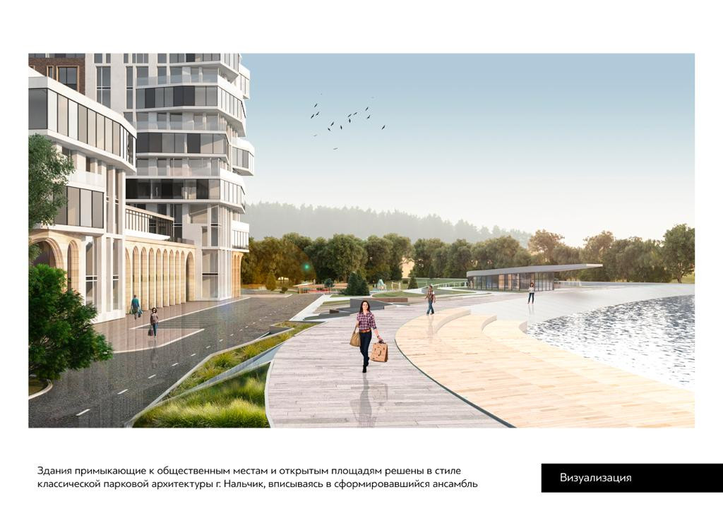 Неповторимое архитектурное решение, комплекс прекрасно вписан в местный ландшафт. Рядом с домом располагается главное украшение нашего города - парк "Атажукинский сад", а также в непосредственной близости располагается  пешеходная улица - "Арбат". Разноэтажность и игра стилями. Каскад из 7 корпусов от 4 до 20 этажей будет иметь современный дизайн.