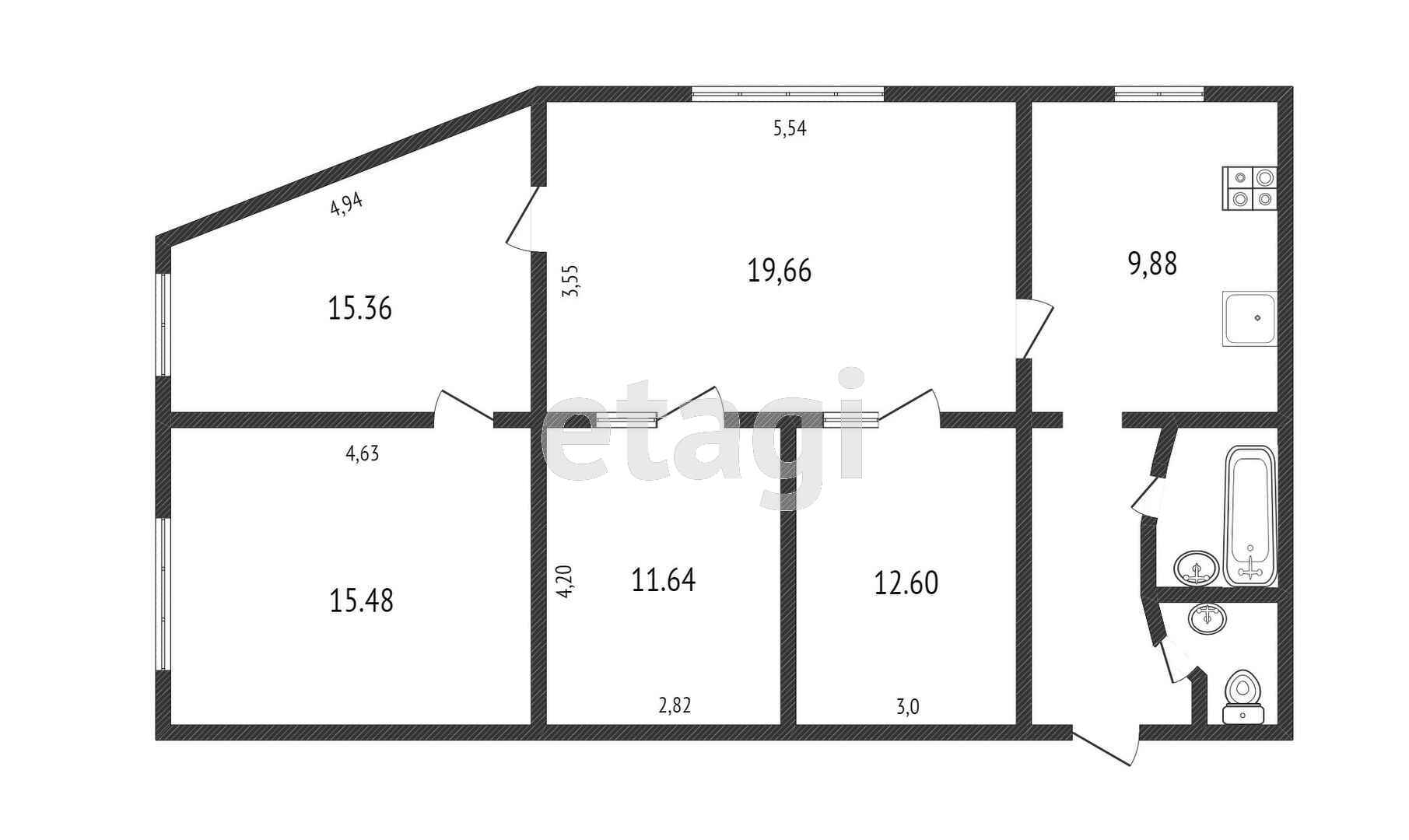 Площадь кухни 9.88 м2
