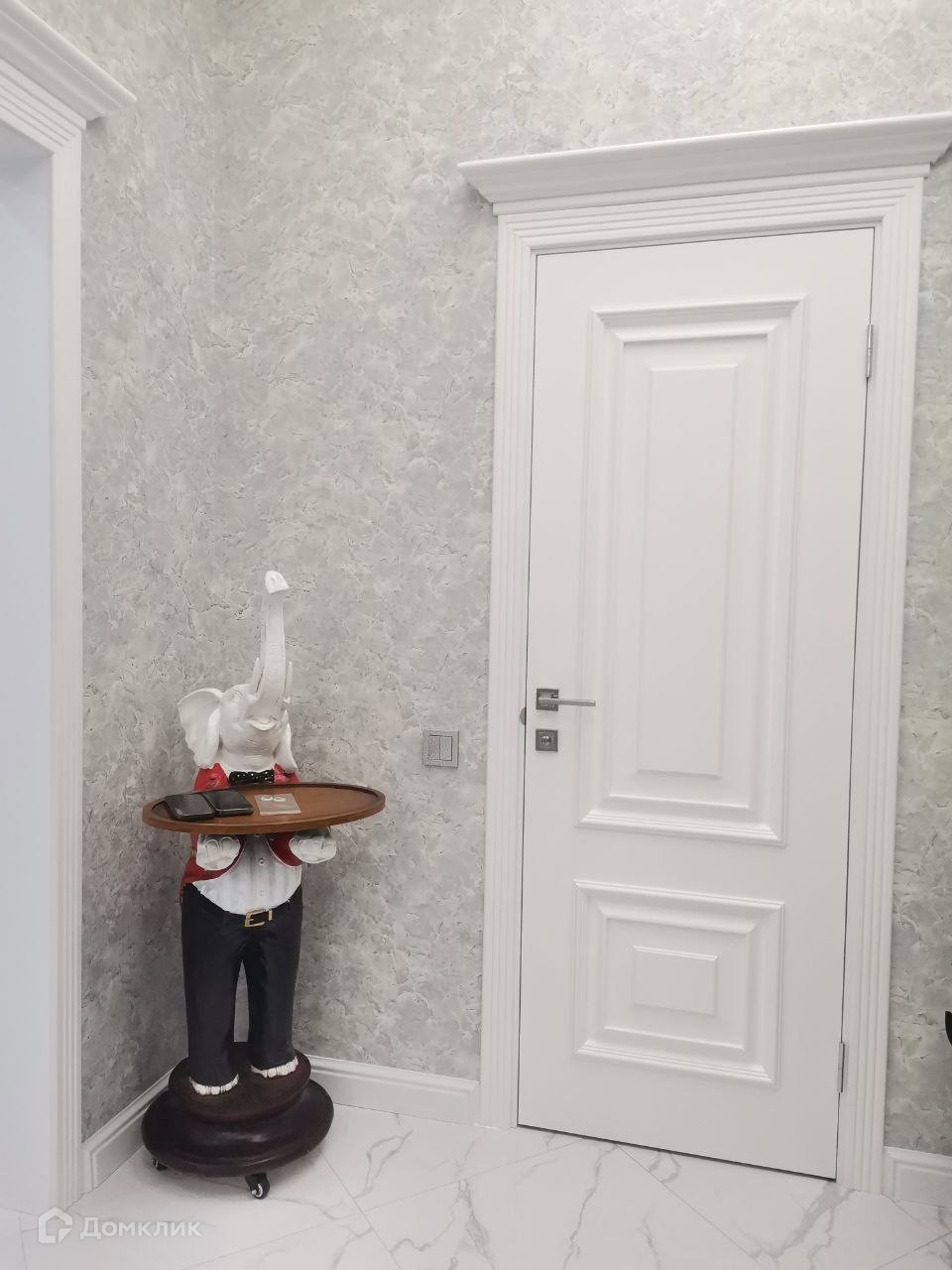 Интерьер в квартире с самого порога до последней детали выполнен в светлых тонах, что само по себе делает помещения стильными, современными и уютными.