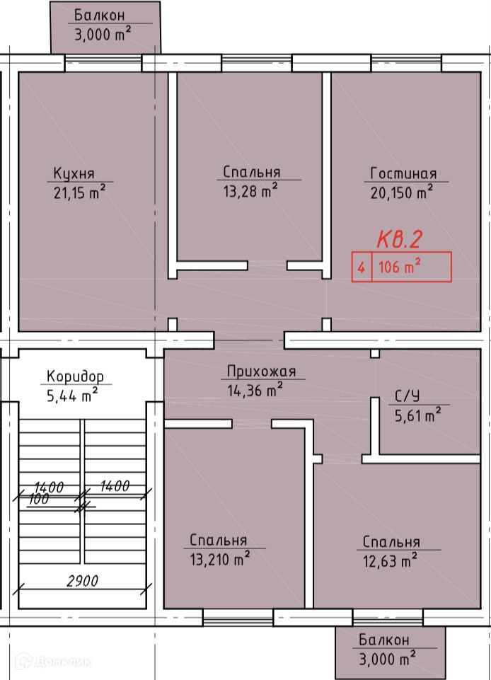 Общая площадь: 106м²