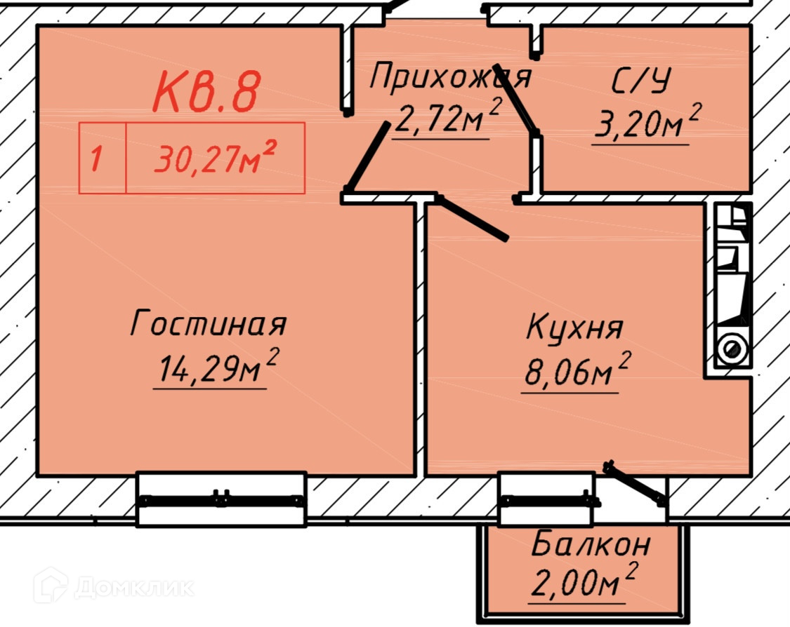 Общая площадь 30.27 м2