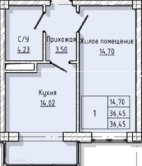 Общая площадь 36.45 м2