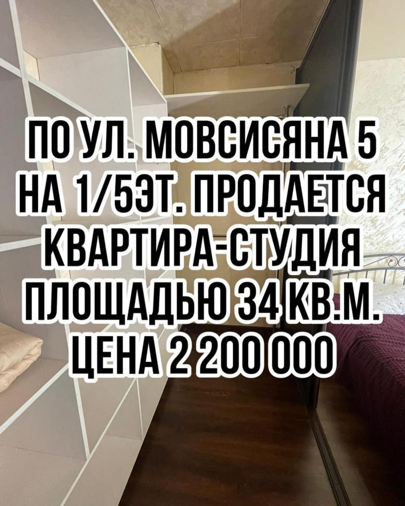 По ул. Мовсисяна 5, продается квартира-студия. В квартире ремонт. Остаётся мебель и техника. Имеется отдельный вход с улицы.